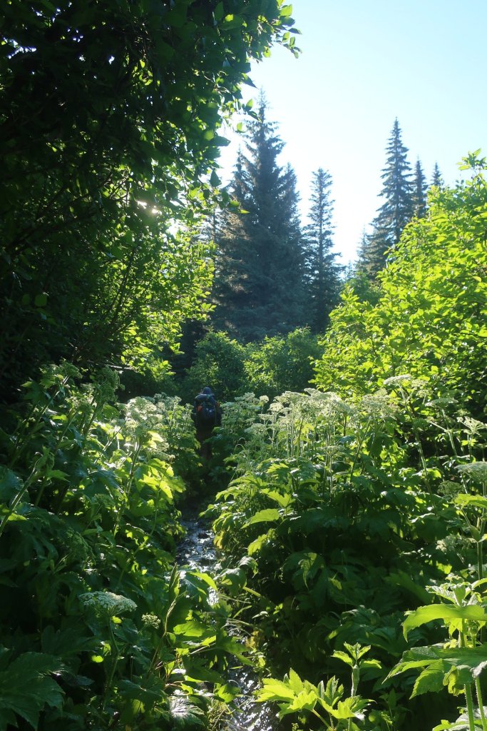 Morning miles do come easy no matter how hard yesterdays finish.  The mosquitos were hovering around the tent awaiting their morning feast.  As annoying as they are the sting of their bite is transient. So you accept it and with acceptance it becomes less annoying. Although it is early days with us and Washingtons mosquitos. I’m sure our equanimity will be sorely tested.