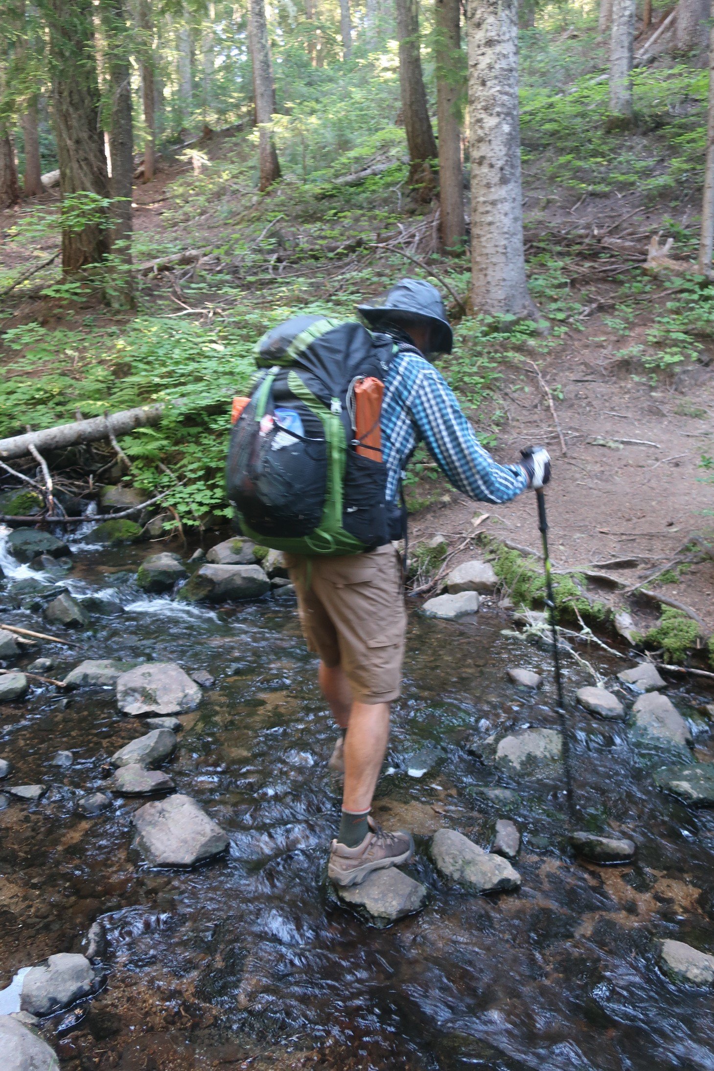 We made great time for the 3.5 miles to Mosquito Creek. I remembered camping here on my hike and there being no mosquitos despite the name. This morning was different, we filtered water while making a blood donation to the local mosquito population.