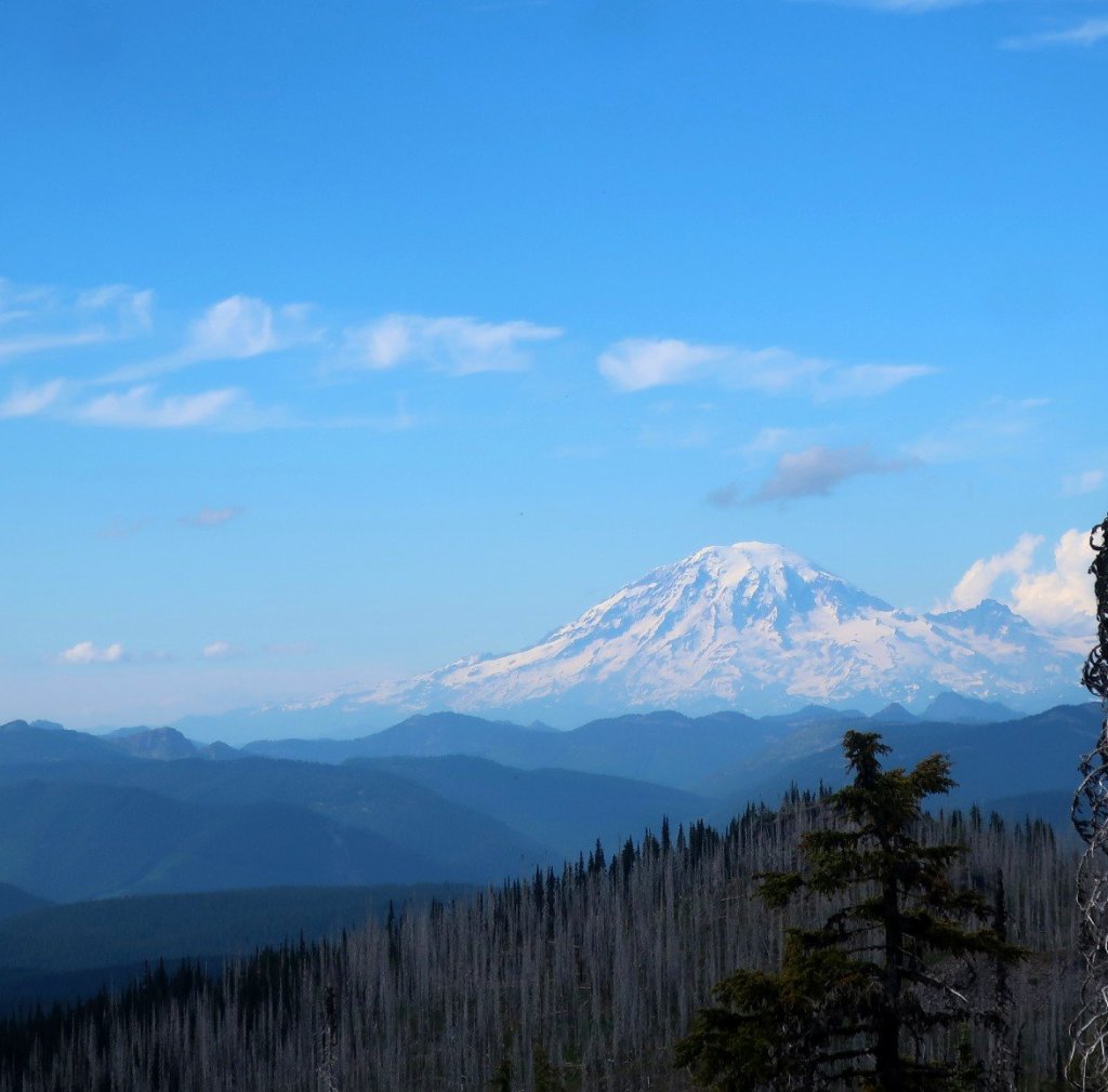 View of Mr Rainier before the trail descended into forest