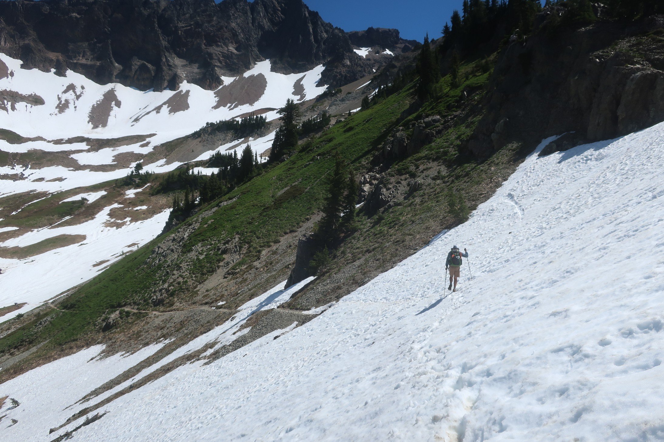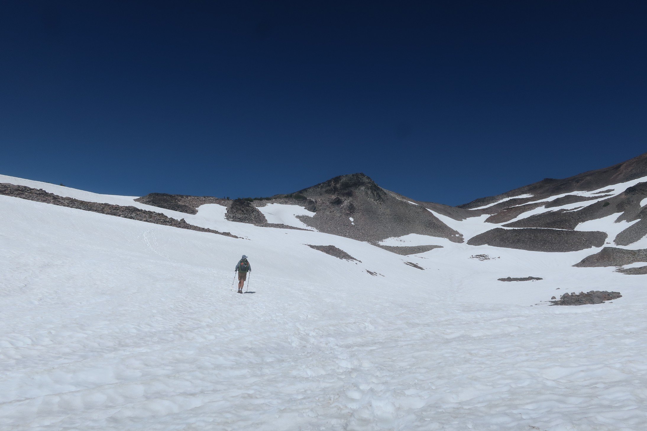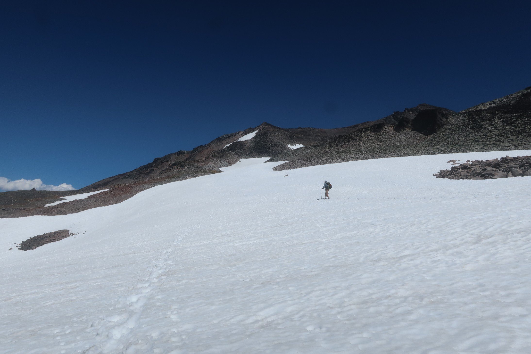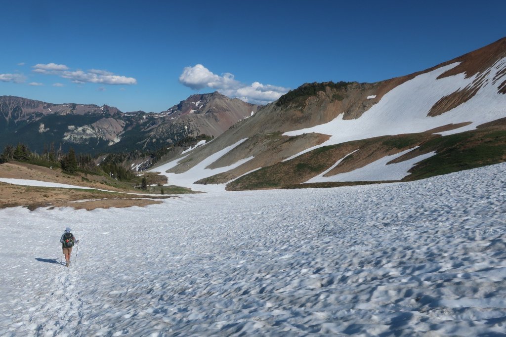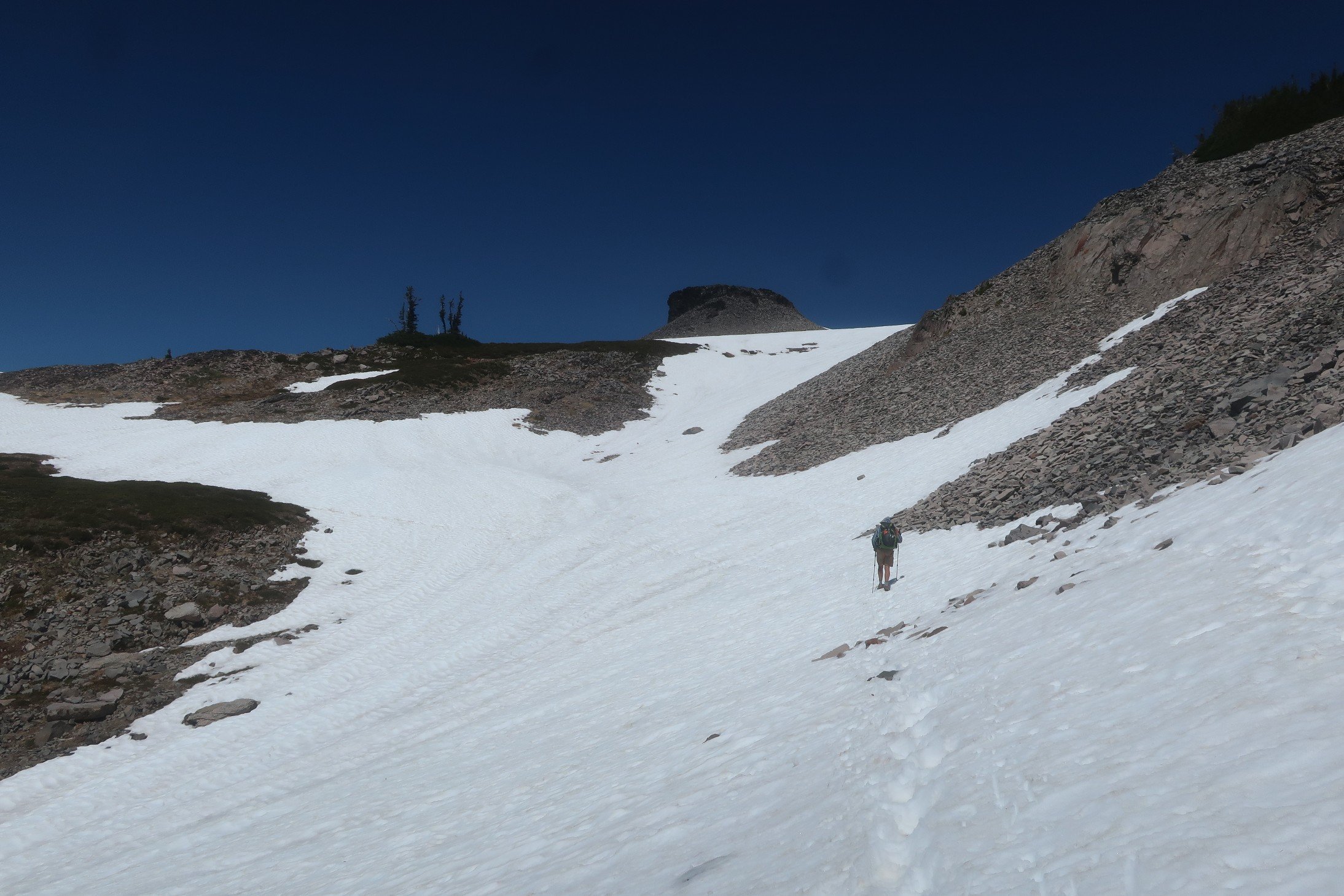 We were so excited to reach Cispus Pass. A sort of photographic wonderland in my mind. Today the excitement was a bit mixed with anxiety for me as we were not sure how much snow we would encounter on the steep approach to the pass.