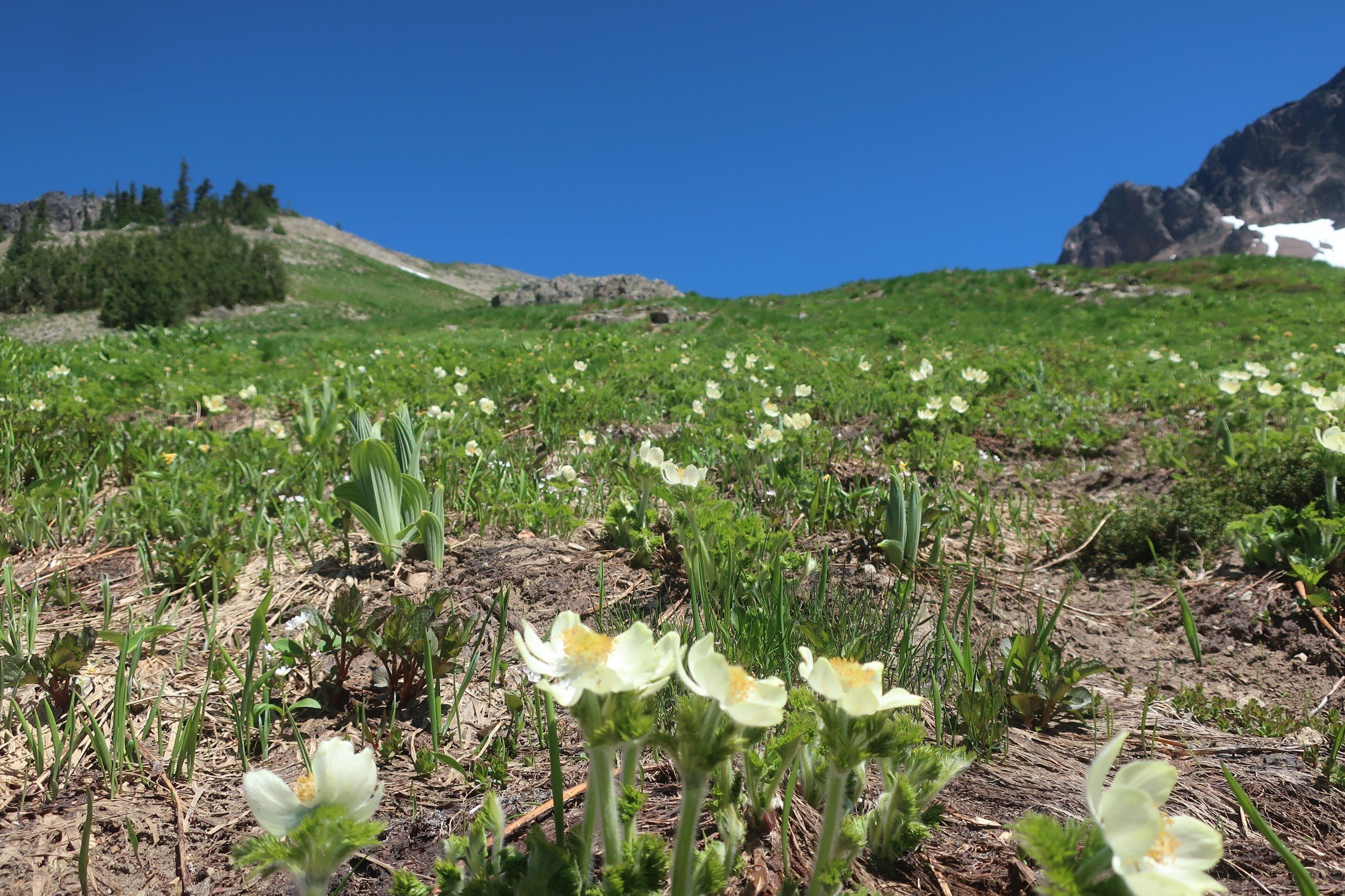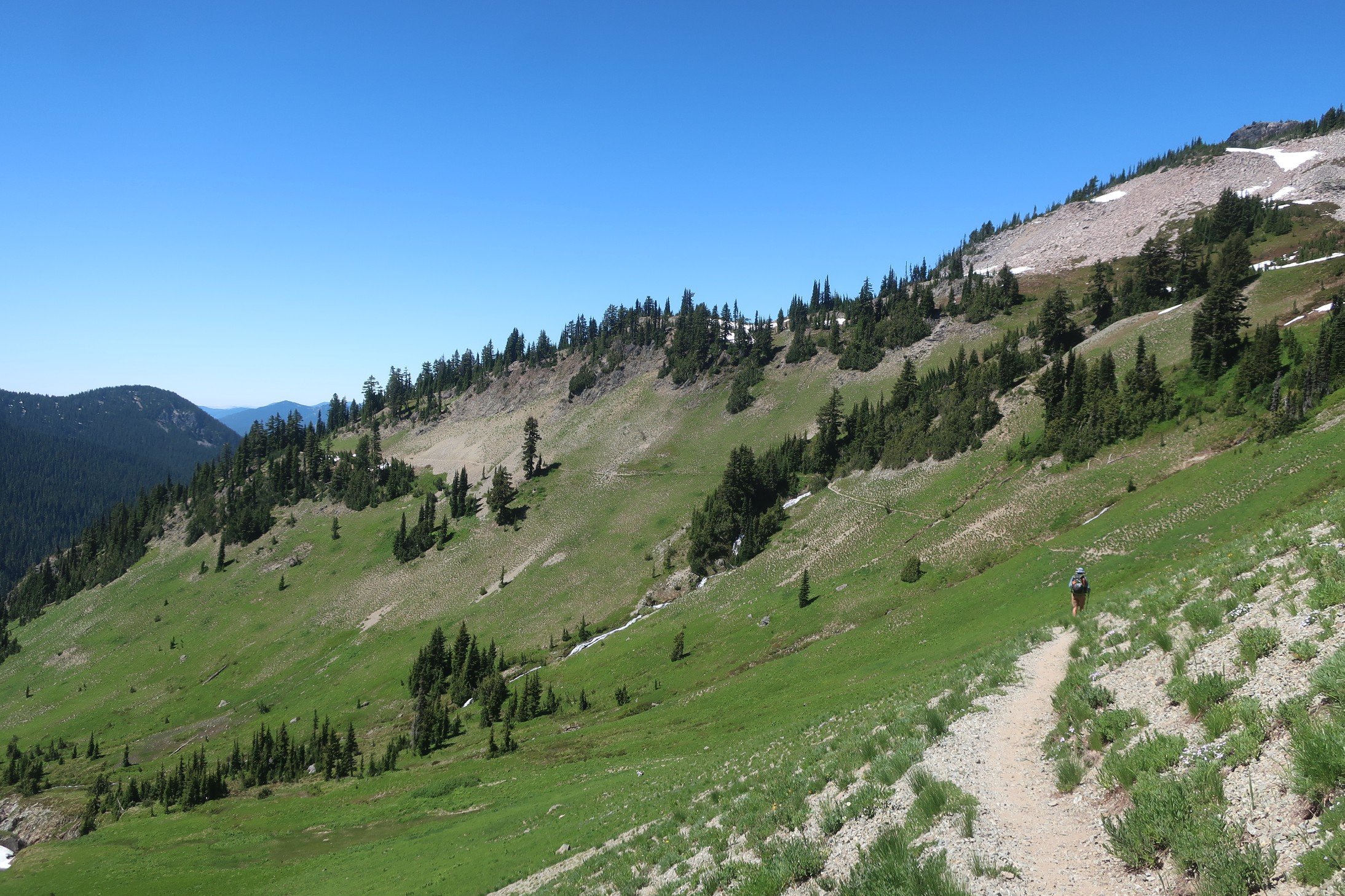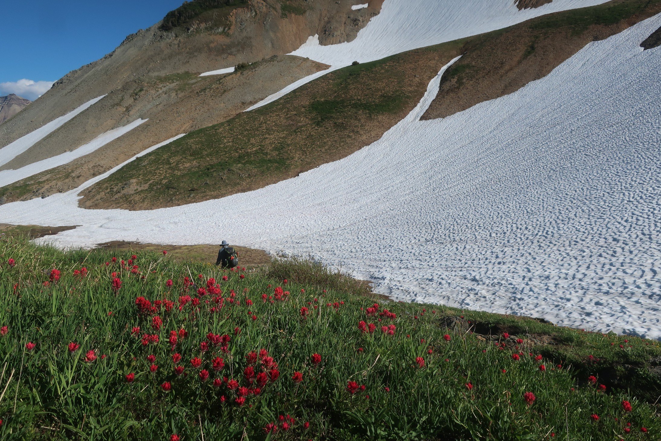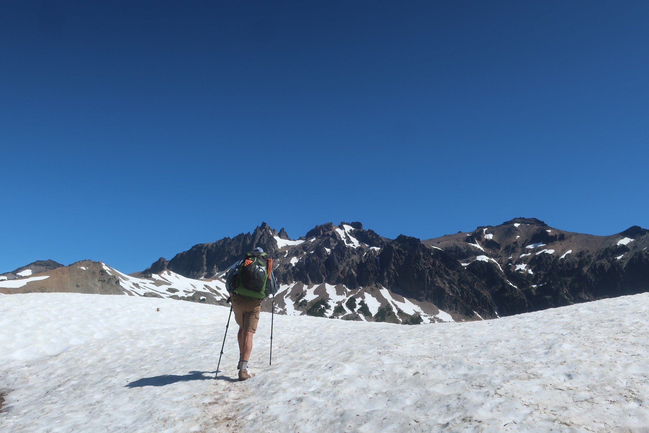We were so excited to reach Cispus Pass. A sort of photographic wonderland in my mind. Today the excitement was a bit mixed with anxiety for me as we were not sure how much snow we would encounter on the steep approach to the pass.