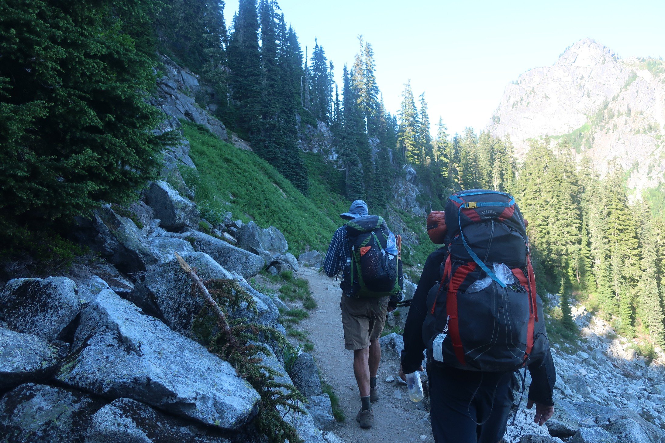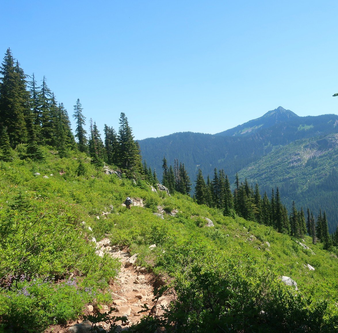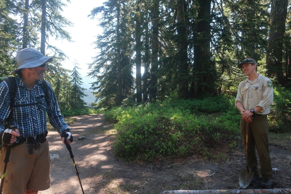 We were pleasantly surprised to find the early parts of the trail were cool and shaded. We left Steven’s Pass with Peter from Seattle who was going out for a couple of days of backcountry hiking.  The miles flew in interesting conversation. Especially for Hammer who found a kindred spirit in his interest in current American politics.