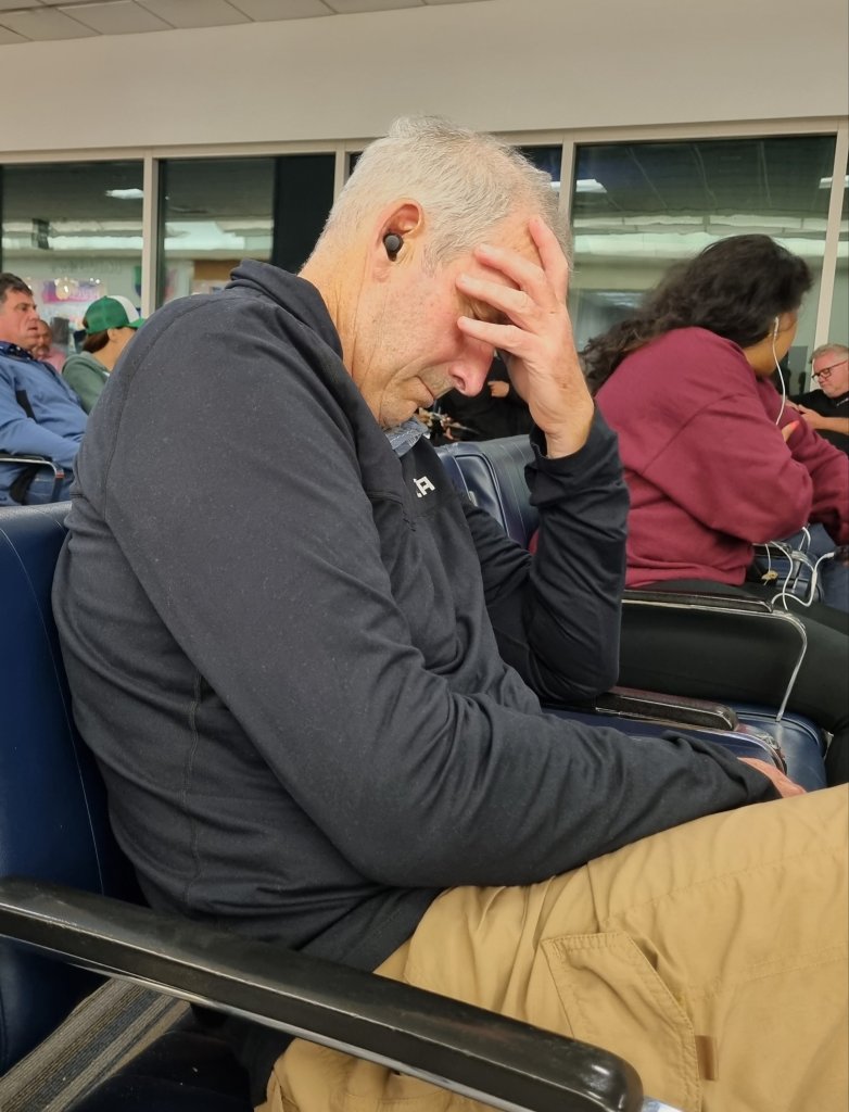 The customer service counters had long lines of very upset people. I noticed a couple of self checking auto booths which no one was using. I scanned our passes and managed to get us on a standby flight leaving at 8pm today. At this stage we’ve been in transit for almost 30 hrs, we were both tired and getting a bit emotional.