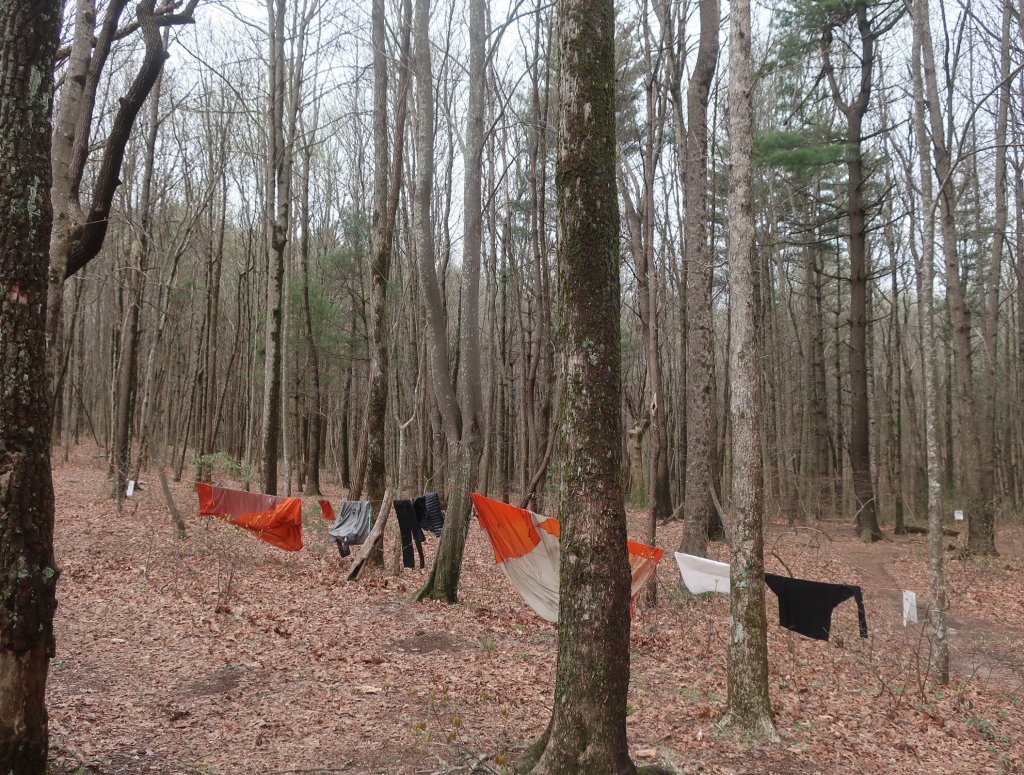 Lots of camp spots around the shelter and quite a few tents already there. We were greeted by an AT ‘RidgeRunner’ who was keeping track of hiker numbers. There would have been about 20 people camped here when we arrived . Yet all the sites are well dispersed diwnslope of the shelter so that you don’t have a sense of being crowded. Today we passed a few AT hikers but we hiked pretty much alone. So it was surprising to see so many at the shelter. So I guess the shelters do concentrate hikers.