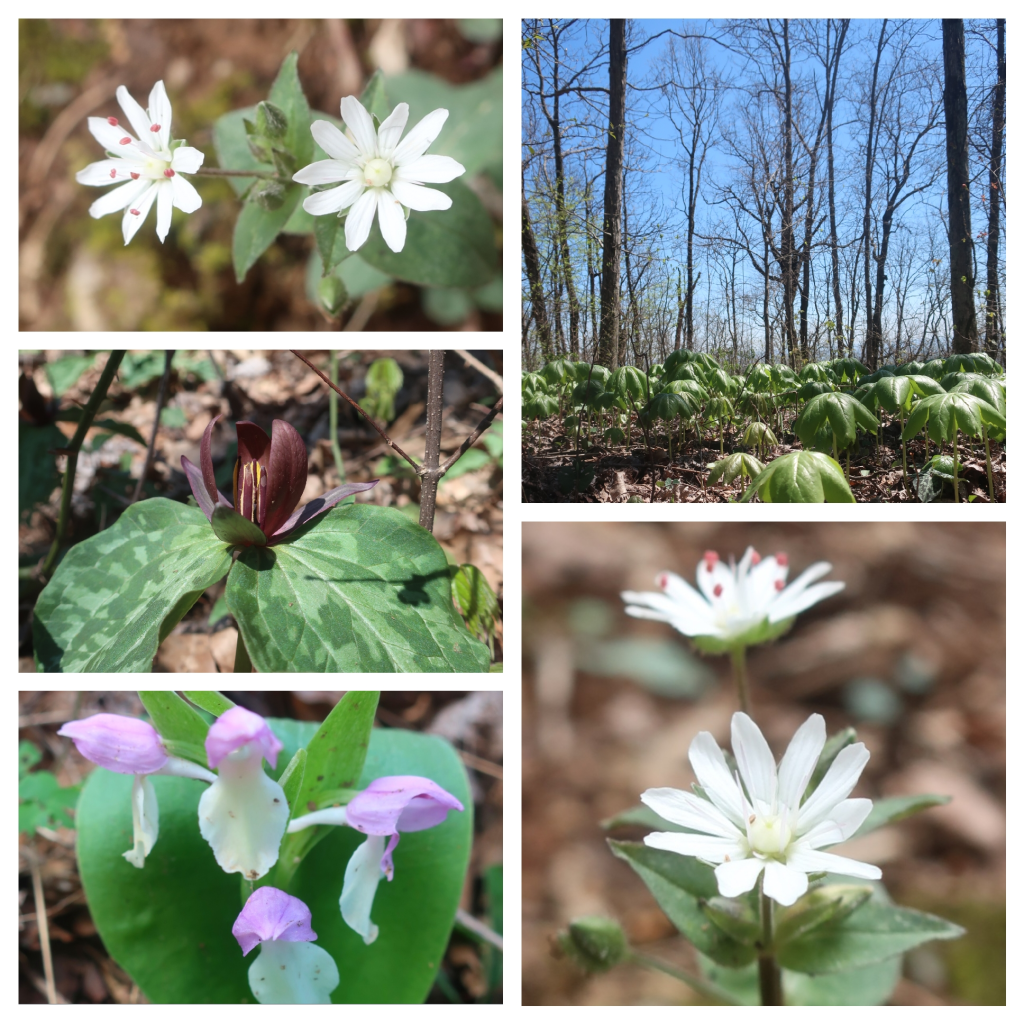Wake Robins and Mayapples! I haven’t seen these flowers since I was a child in New England. And the bare deciduous trees rising from the bare earth of winter. I feel very nostalgic….
