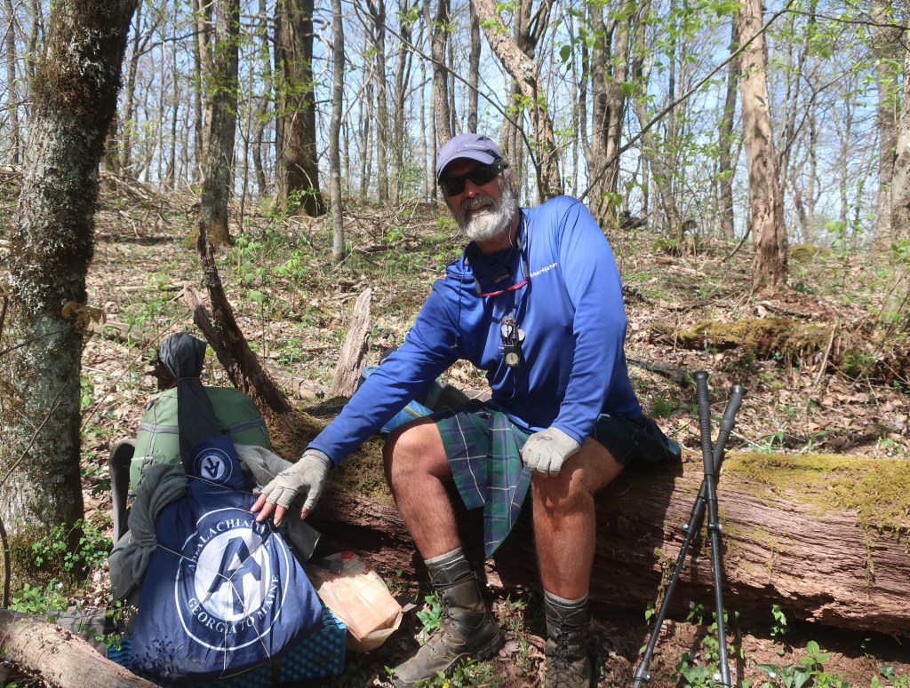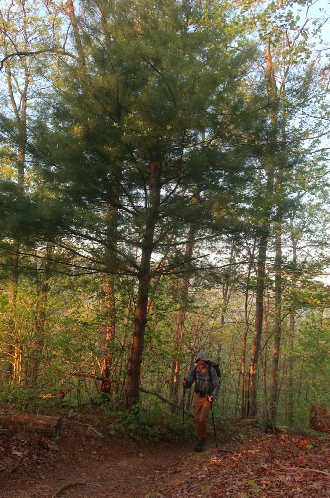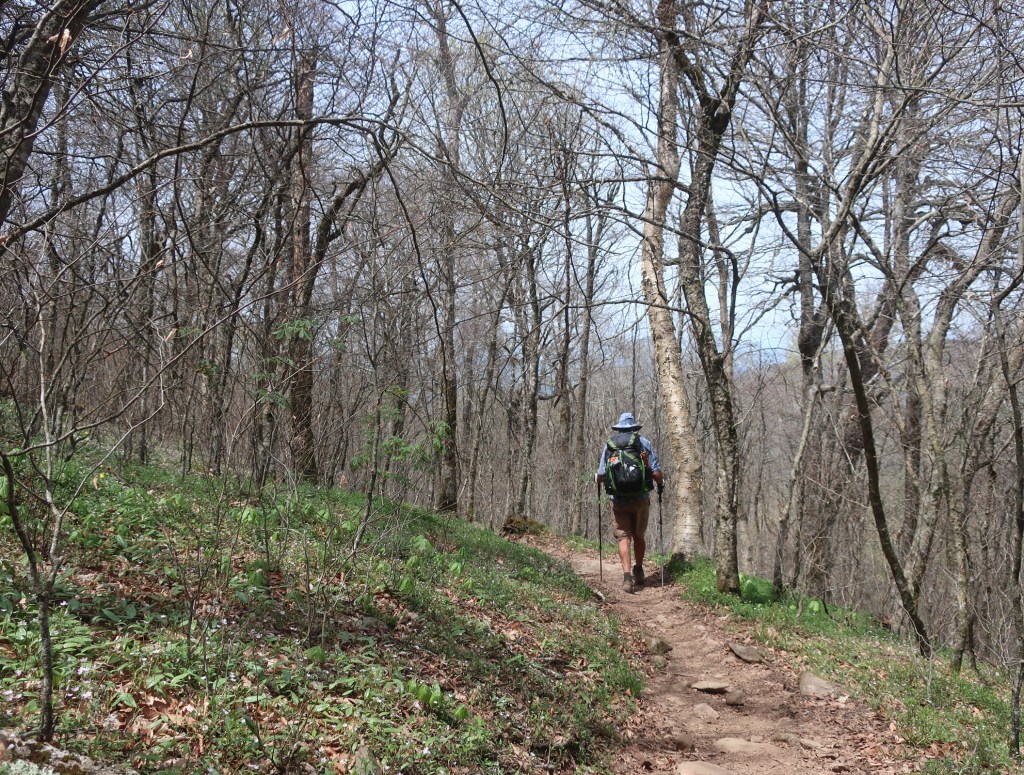 A sweet couple of miles on an undulating trail followed towards Birch Spring Gap. We passed a wizened hiker here, trail name T, a veteran of numerous AT through hikes. We had stopped to filter water and have lunch and ‘T’ stayed with us for a while chatting. An interesting character with so much knowledge of the trail and all its natural assets. Another couple of hikers we met yesterday at the marina joined us for lunch (Fox and Fourth Fork). It was nice to have company while stopping for a break. It’s been a great morning, we were feelinga little euphoric, let’s see how the afternoon pans out.