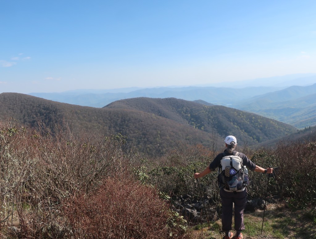 We ascended 2405 feet ~733 m to reach the first clear view from the Smokey’s at the Shuckstack Fire Tower. Hammer climbed the tower – fearless, I stayed below couldn’t hear to even look up – not a fan of heights.