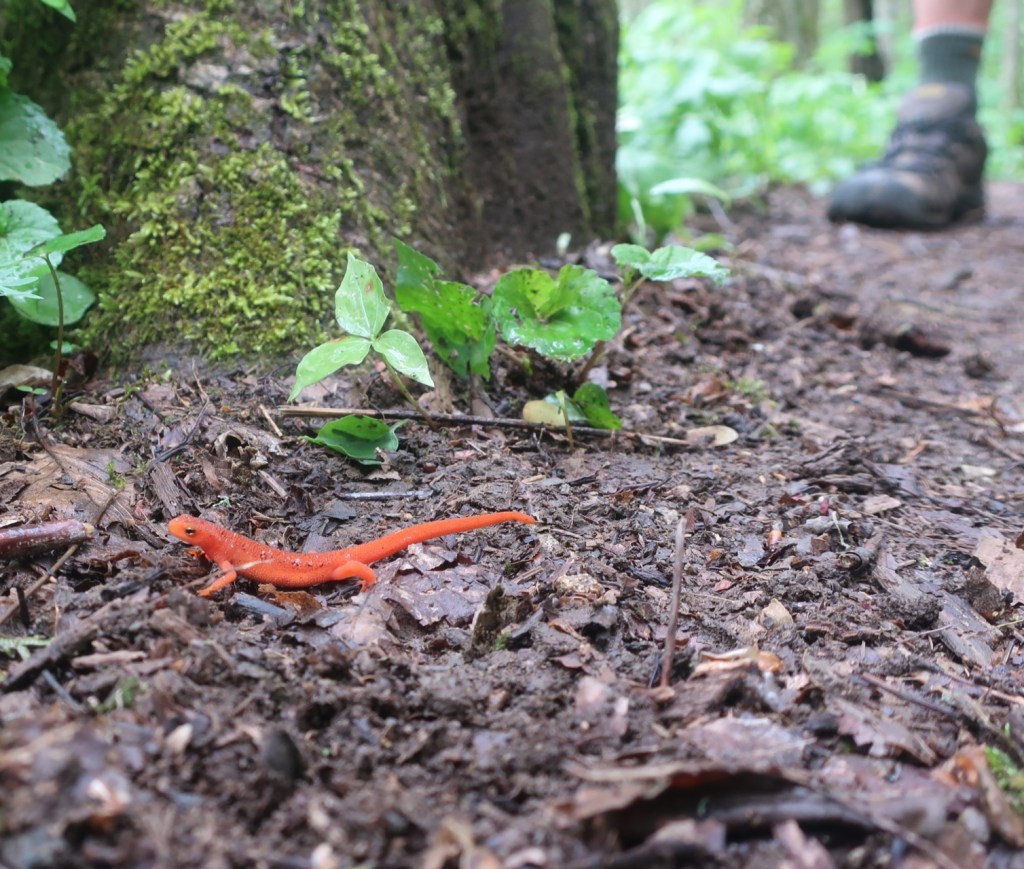 The creek banks and surrounds were a haven for salamander. The Great Smoky Mountains NP has the world’s greatest salamander biodiversity. We didn’t see any in the park. But on our hike from the creek we spotted six. Such a treat, you can even see their gills in one of my photos.