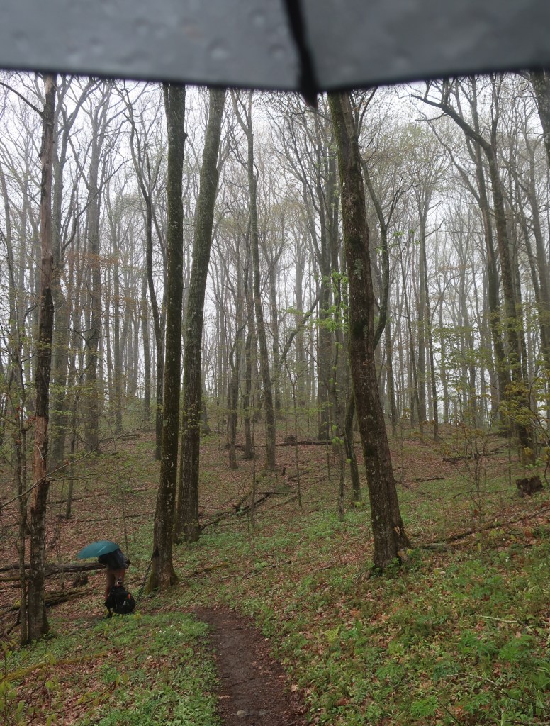 Hammer was still carrying a soaking wet tent and we were on the lookout for a break in the weather so we can stop to dry everything before setting up camp for the day. Sadly no sunshine but by days end the trail provided an almost perfect spot. A little exposed but fantastic views of the surrounding valley and the Big Bald in the distance. Hard to believe that we will have to walk over that tomorrow. There was little wind but just enough sunshine to dry our tent and get settled before another heavy shower passed over us. What a blessing Big Agnes Hilton is proving to be. Let’s hope she continues to shine.