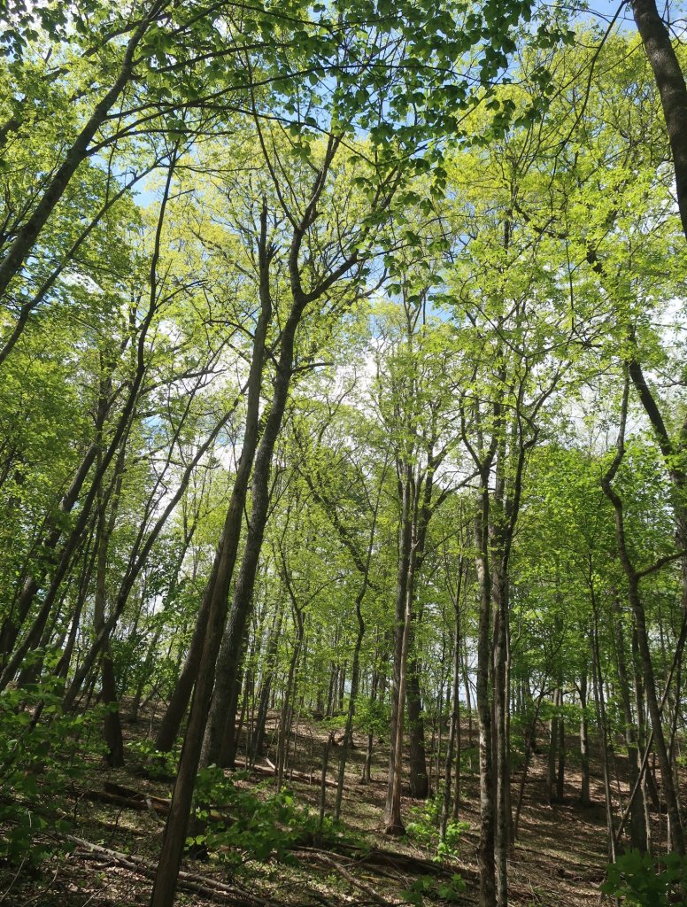 The day dawned to brilliant blue skies and it quickly warmed up as we wound our way up and down on long ascents and descent. Nothing too steep just long gentle grades. The glory of the day was all above us. Warm weather, endless blue skies and that amazing light green foliage of new seasons growth.