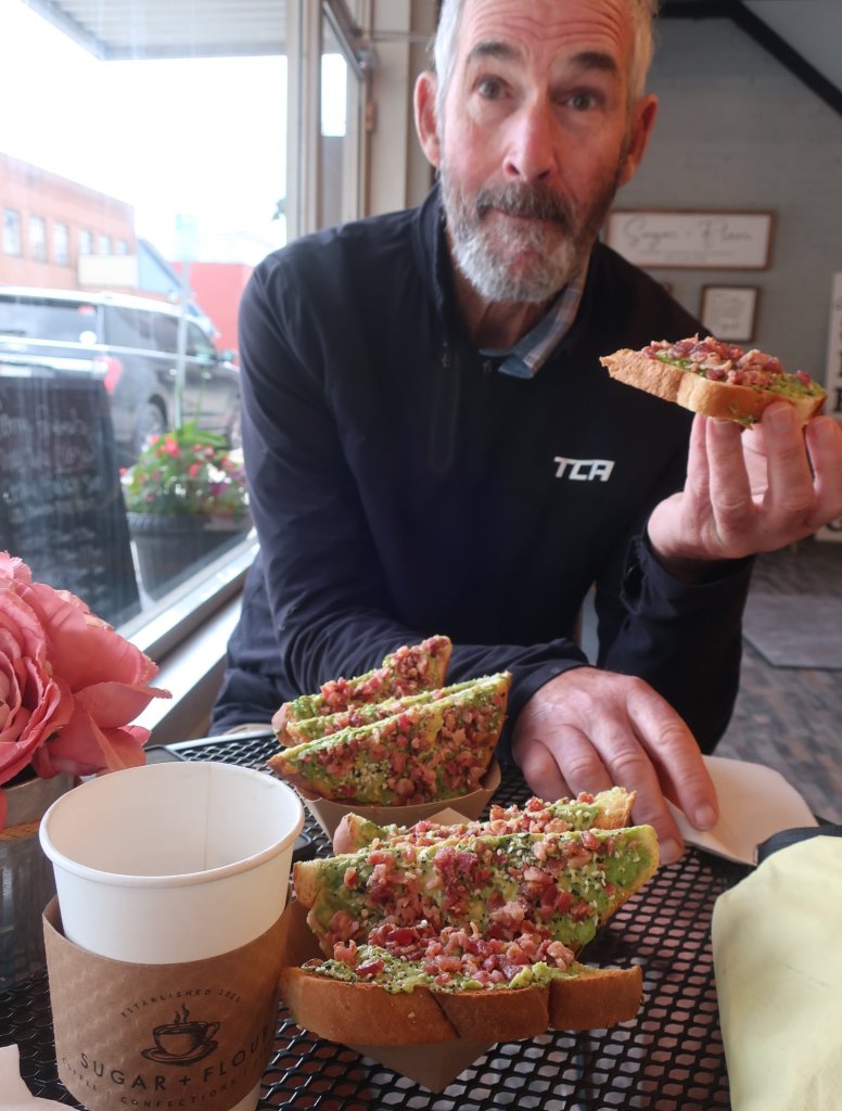 We waited till 8ish before walking downtown to a coffee shop for breakfast. Sadly the shop was closed, permanently. And many of the town stores were empty. There is a new coffee shop, and as far as we could see, the only one in town. Limited breakfast options but what we had was very nice; avocado and bacon on toast was surprisingly tasty. A boiled egg on top would have gone down a treat but it wasn’t possible.
