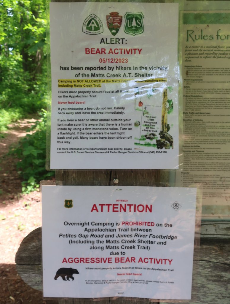 We stopped for lunch before James Road which comes off the Blue Ridge Parkway because it was our last water for quite a few miles. It was an early lunch which means the afternoon could be super long especially as we have to traverse a 10-mile area that’s closed to camping due to aggressive bear behavior over the past couple of weeks.