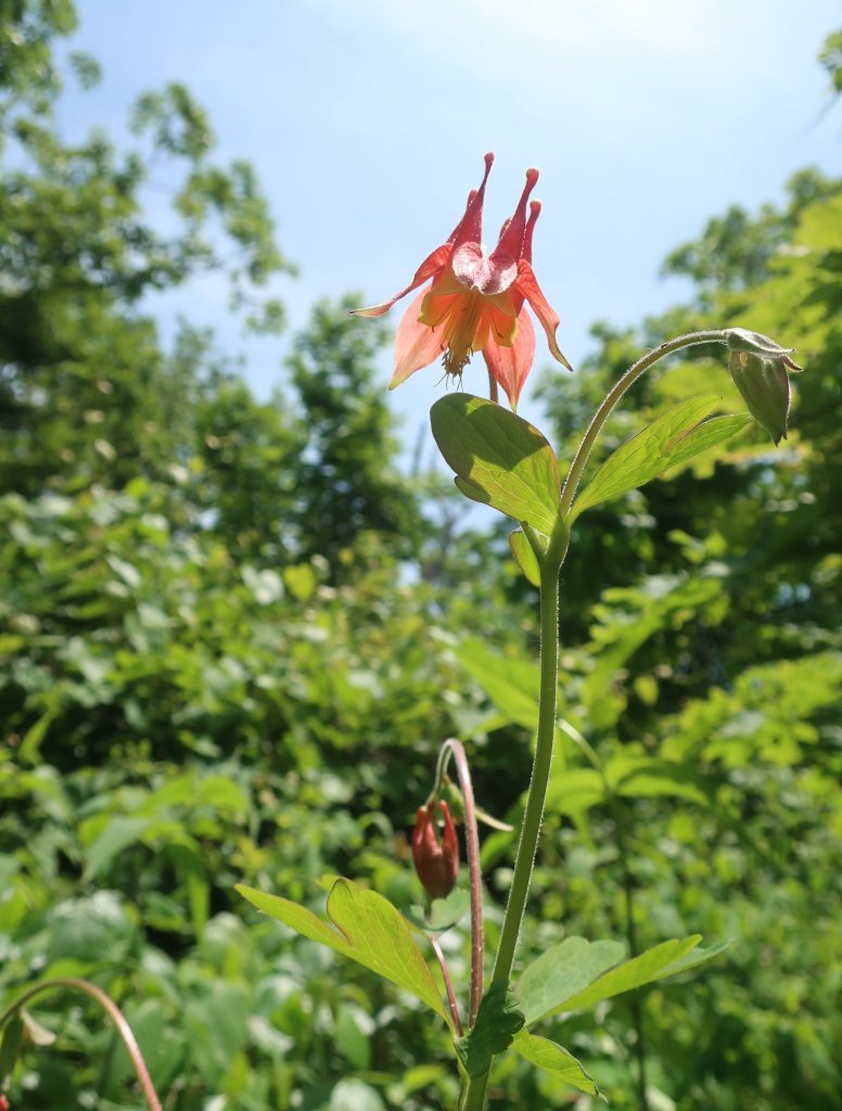 We ascended from the shelter through a rather dense grove of rhododendron, most past their peak. A few plants were still holding full bunches of flowers, but it won’t be long before they’re gone. The morning was surprisingly cool, despite the clear blue sky and the sun already well above the horizon.
