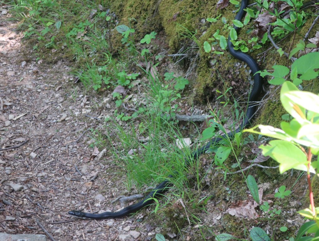 We passed a big black snake right across the trail. It had just eaten you could see the body was corrugated. A mile later Hammer spotted another. I must have disturbed it and it crossed the trail just in front of Hammer.