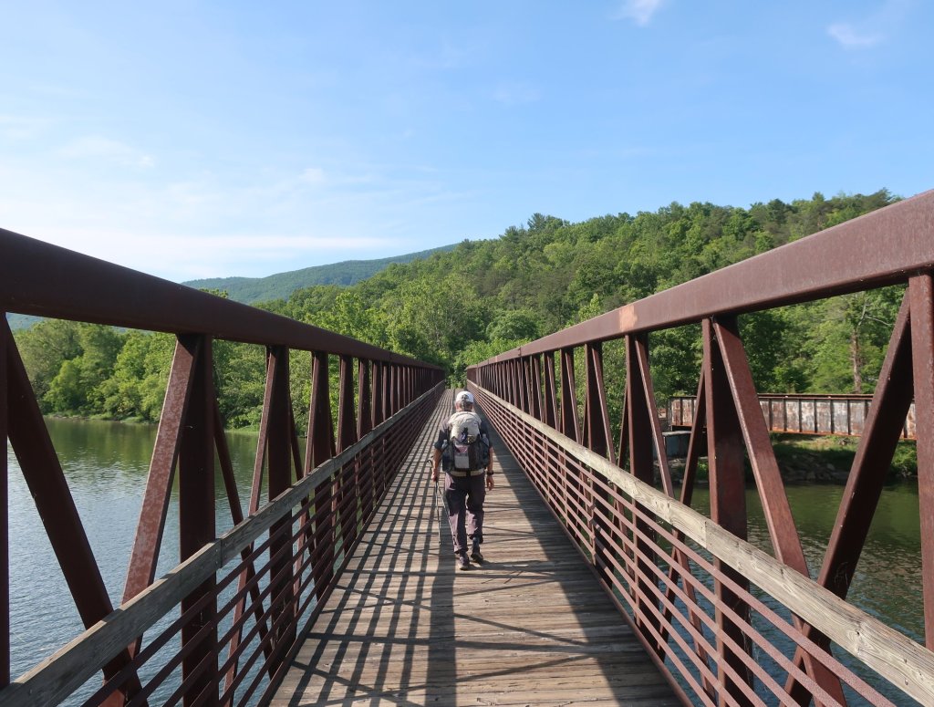 The last four or so miles we were descending with great views of James River down below. We could see where we were heading, a long footbridge across the river. Hiking felt so much easier. Not just because we were descending for miles but also because had nice views. Seeing an enormous river was really quite exciting just because it was so different to the green tunnel.