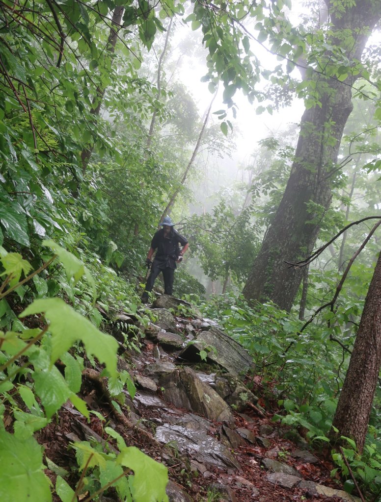 The descent off The Priest was very long. Hammer commented about feeling rather blessed this morning that the rain had not arrived at the predicted time. We got an hour of extra grace – rainfree hiking until the rain returned at 8:15. And it continued for pretty much all day.