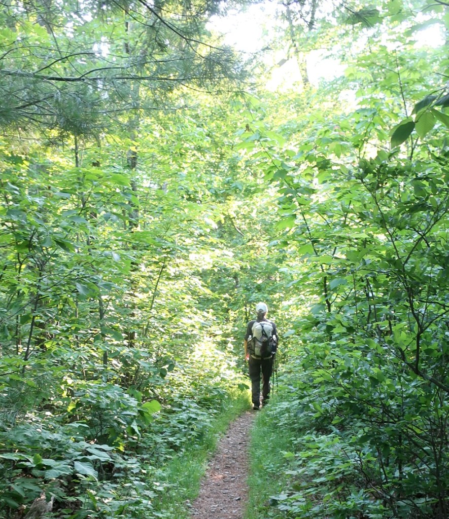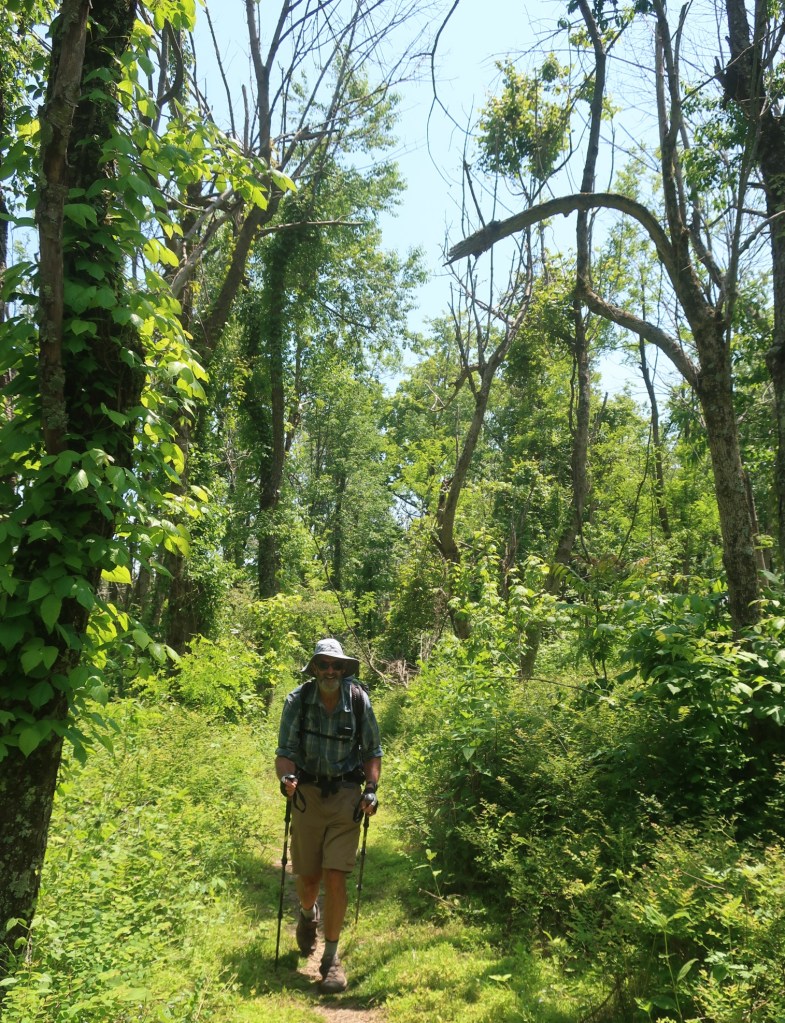 From the campground the trail got a little bit steeper ascending and descending. It was getting close to mid-day, it was very warm and humid. But at the ridgetops there was always a lovely cool breeze, just enough to refresh. We saw only one other hiker today. He stopped for a chat while we were having lunch on ledge with a view. His trail name was ‘Firewalker’ and he was on his second AT through hike. He started on March 4th and was a bit surprised to learn that we started more then a month after him.