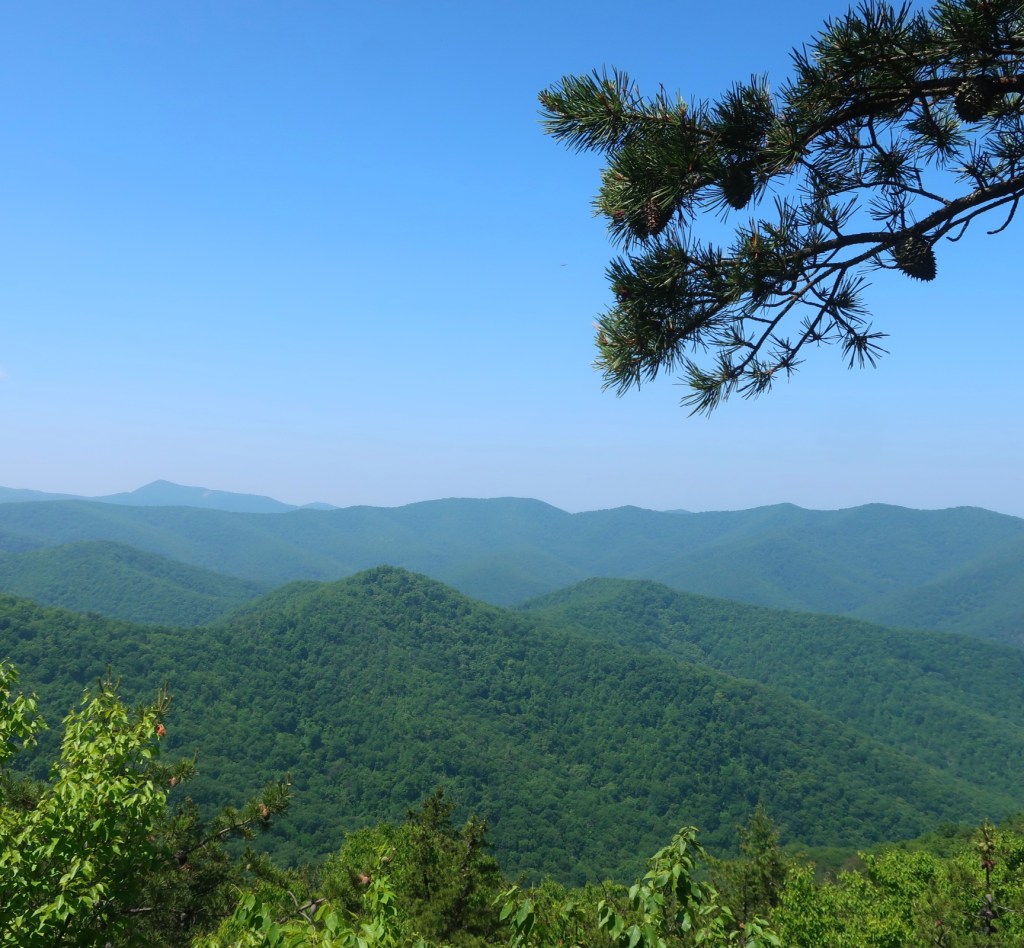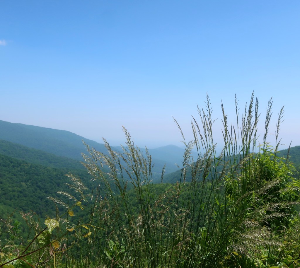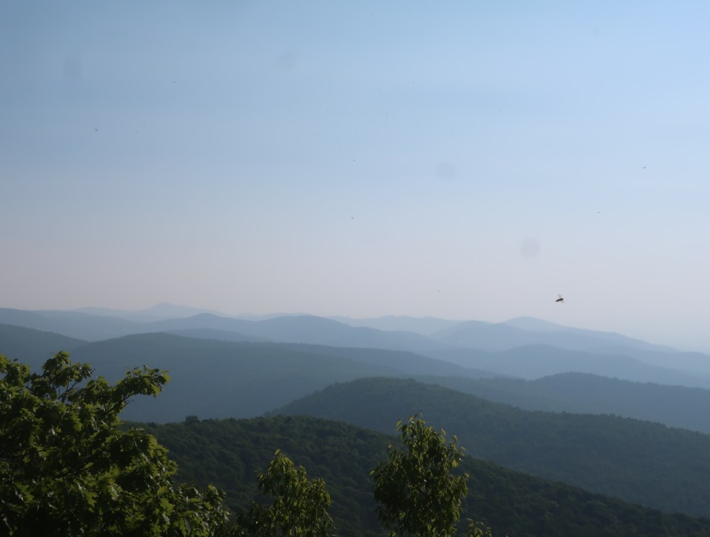 We crossed Skyline Drive three times in the first hour from camp on our approach to the summit of Blackrock Mountain. We will go on to cross it nine times though the day. Blackrock Mountain is toped by a pile of boulders that continue down the mountain as a huge tallus field.This morning we had pretty nice views from the top. Gentle rolling hills below the mountain and a valley off in the distance. A layer of haze clung low on the horizon making it hard to see too far in the distance.