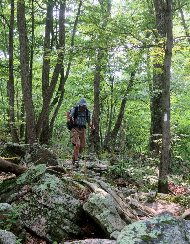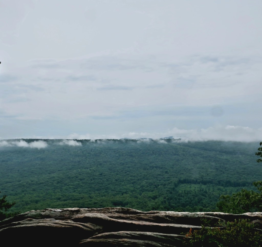 We crossed Peters Mountain Rd over a pedestrian bridge built especially for the AT hikers, which was really nice. The road below was really busy. After that we were on a well-groomed trail on the way to Table Rock overlook.