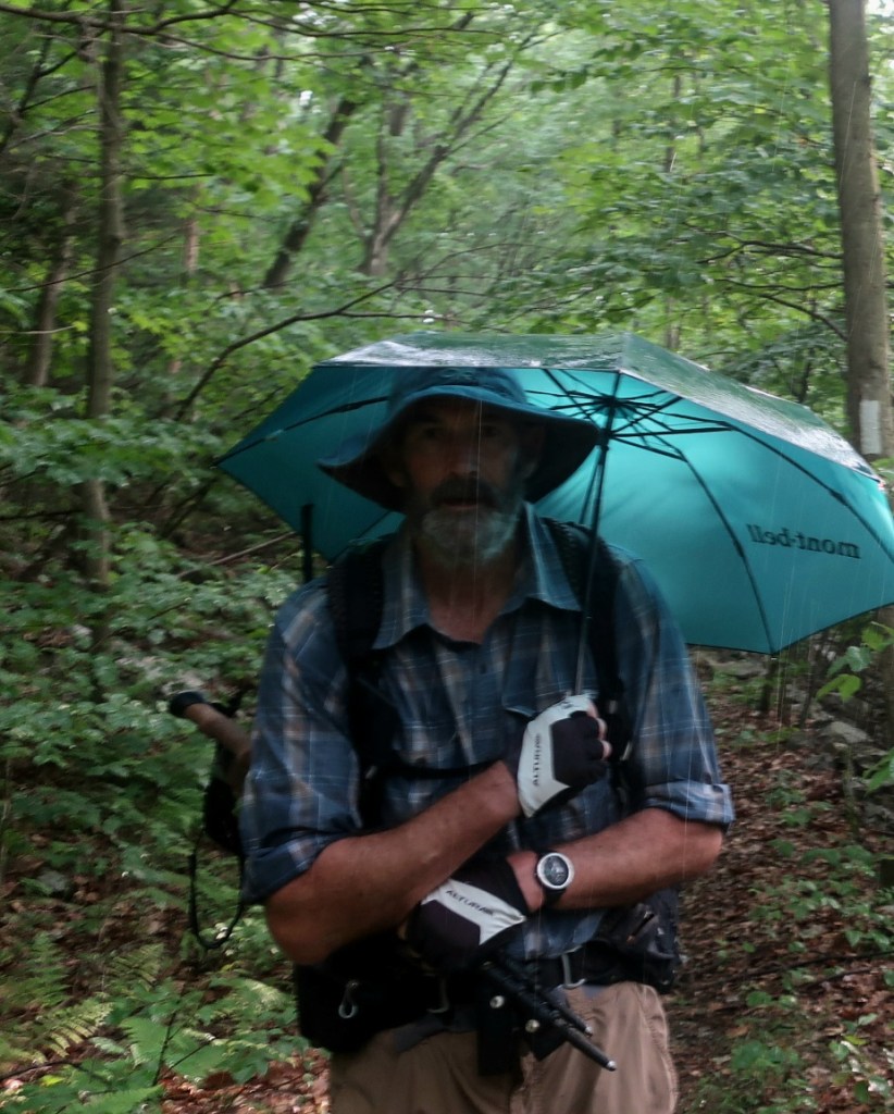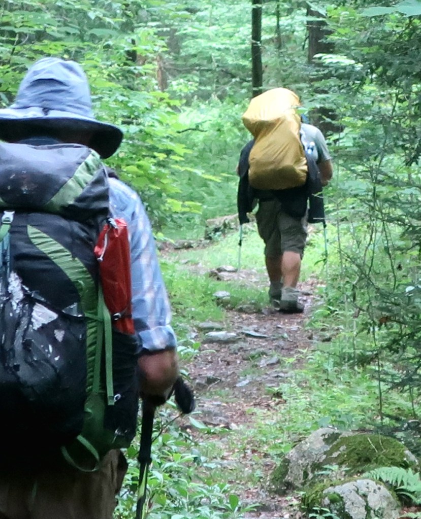 Most of the morning we hiked a ridgeline over rocky terrain interspersed with some relatively smooth sections of trail. The rain narrows your focus and with the rocky terrain it kept us looking at the ground. We didn’t talk much, the morning seemed to glide quickly towards midday.