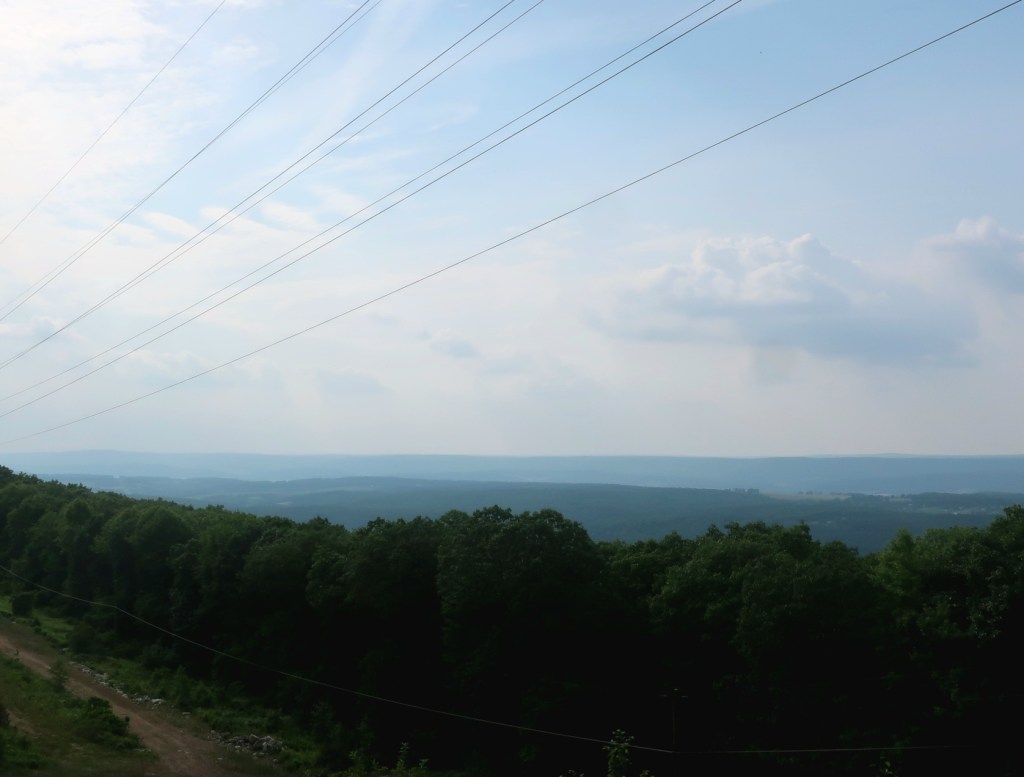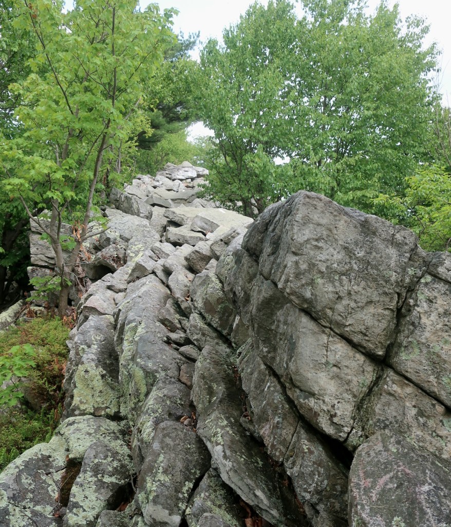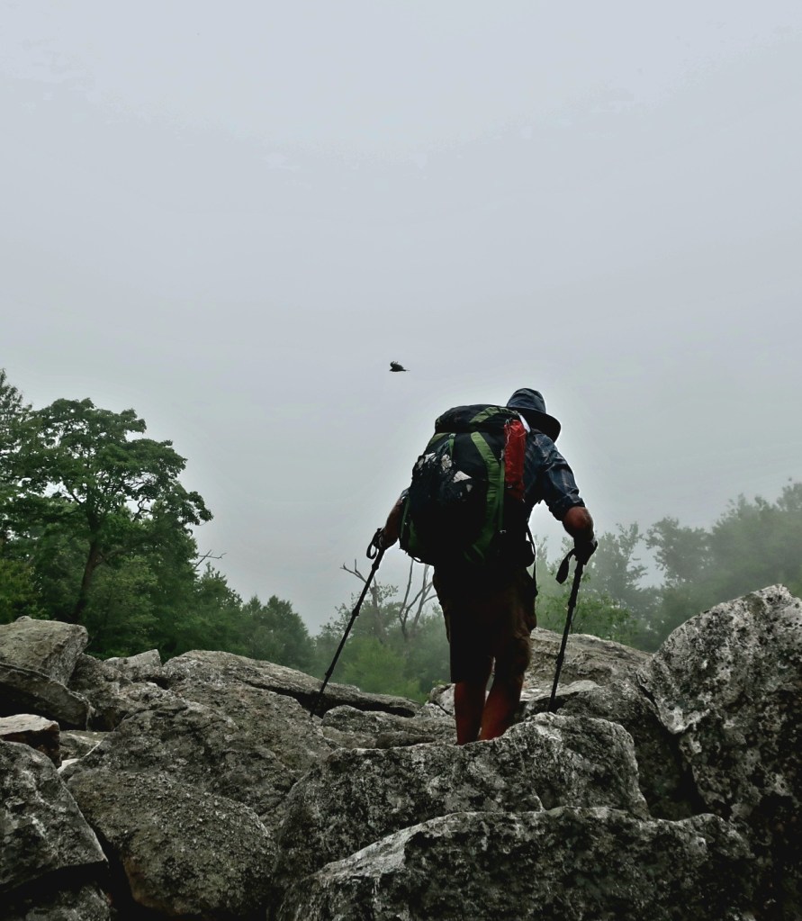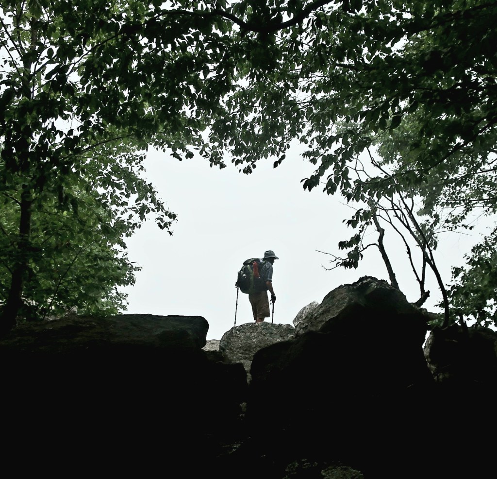 The rocky terrain was not quite over for the day. From the road we ascended towards Bake Oven Knob stepping over more rocky boulders. The view from here was the best we’ve had all day. The ridgeline into New Jersey seemed so much closer now even though the view was smokey. Another person enjoying the view commented that the smokey haze was from the Canadian fires.