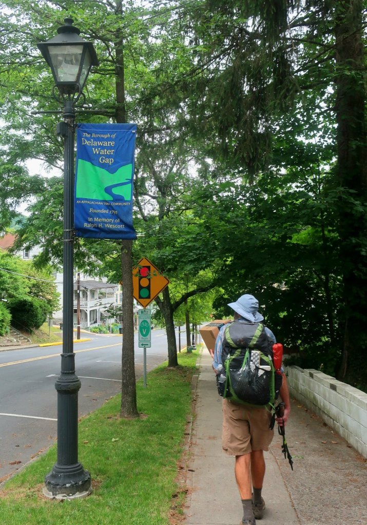 We got back on trail for the remaining 7 miles to Delaware Waters Gap and the end of Pennsylvania. Even though we know it’s not the end of rocks on trail it is enormously satisfying to tick off one more state. We hiked into town with Walrus and the miles rolled by quickly in conversation. Walrus works in the music industry and is moving from Florida to Nashville to write and produce music.Â