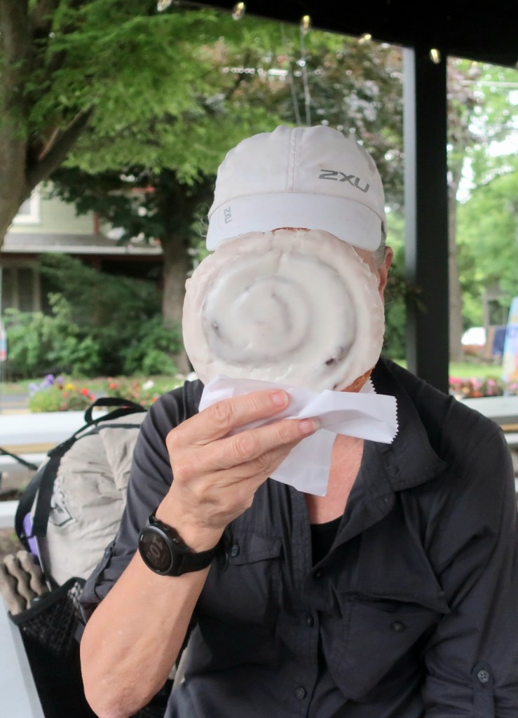 Before rejoining the trail we stopped at the Bakery for brunch. . Hammer had a burger with fries and I had a toasted egg, cheese and bacon sandwich on delicious rye bread. We also shared a cinnamon scroll just because it looked amazing. It tasted even better then it looked.