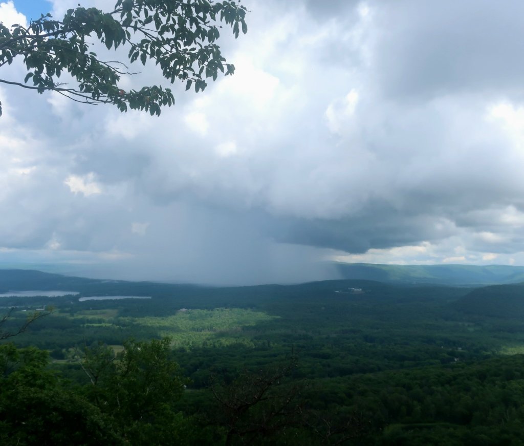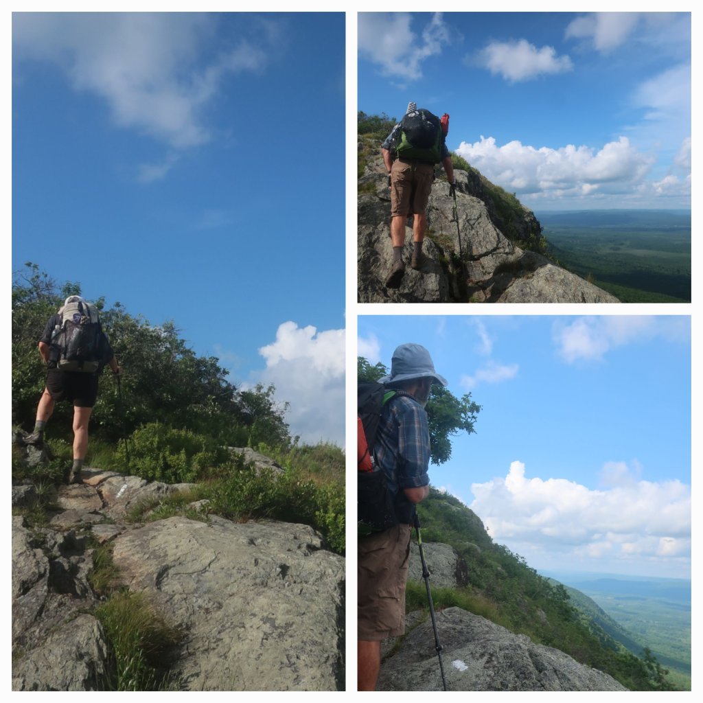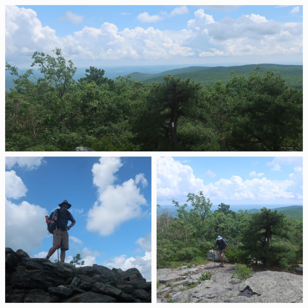 I don’t recall the ascent of Bear Mountain being all that difficult but the descent was a bit tricky. A couple of hikers we met earlier told us that the descent off Bear Mt today will be a lot like the descents off the much talked about White Mountain peaks in Vermont. Rocky and steep in sections which made for a couple of challenging spots. Especially with a pack, the concern being that the pack catches on a rock and tips you forward. But with slow and careful route selection we made it down without any problems. It would be a far more challenging descent in wet weather. The 360° views from the top of Bear Mountain were pretty sensational.