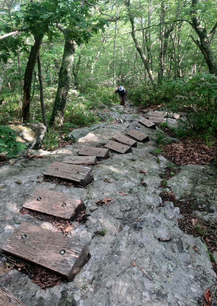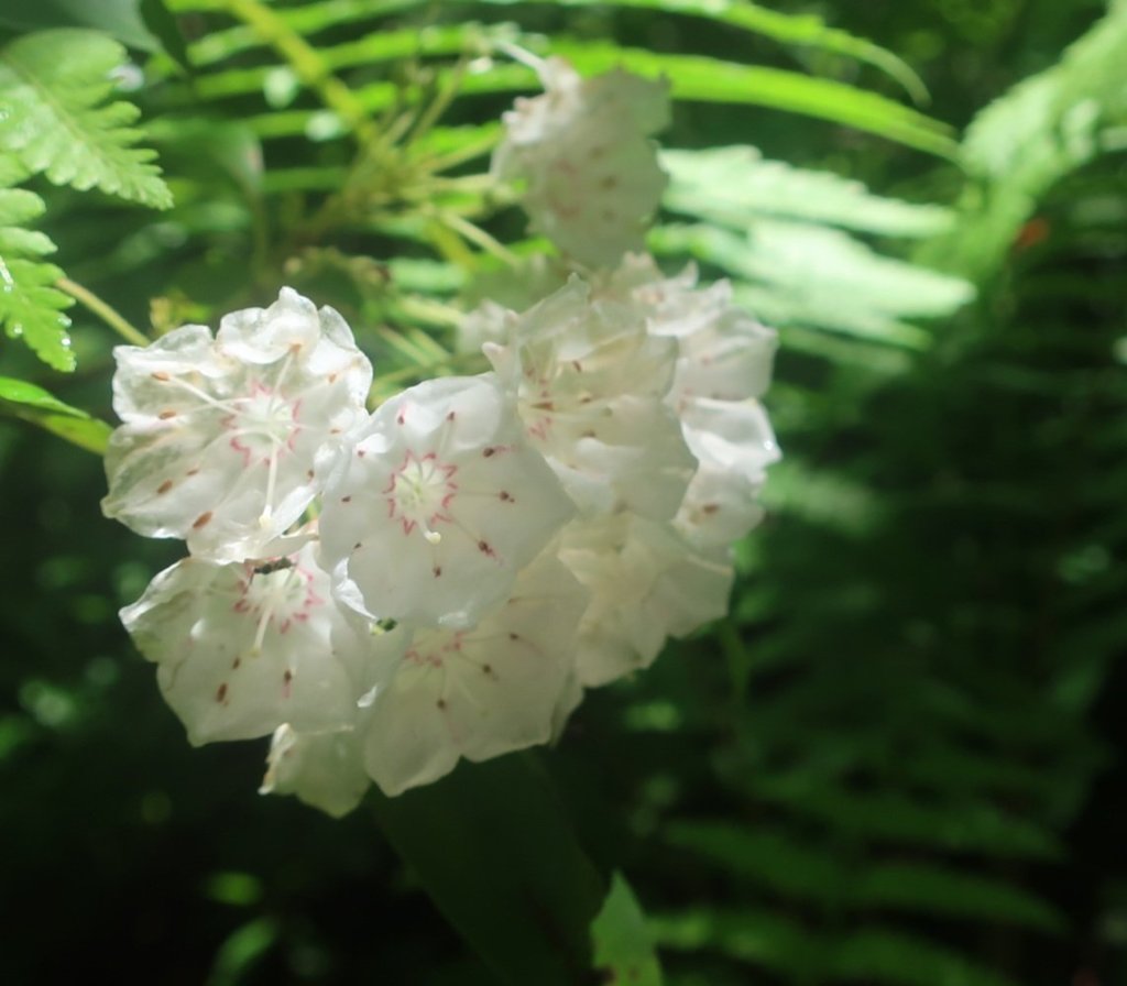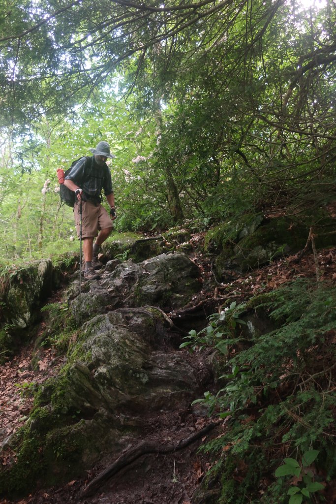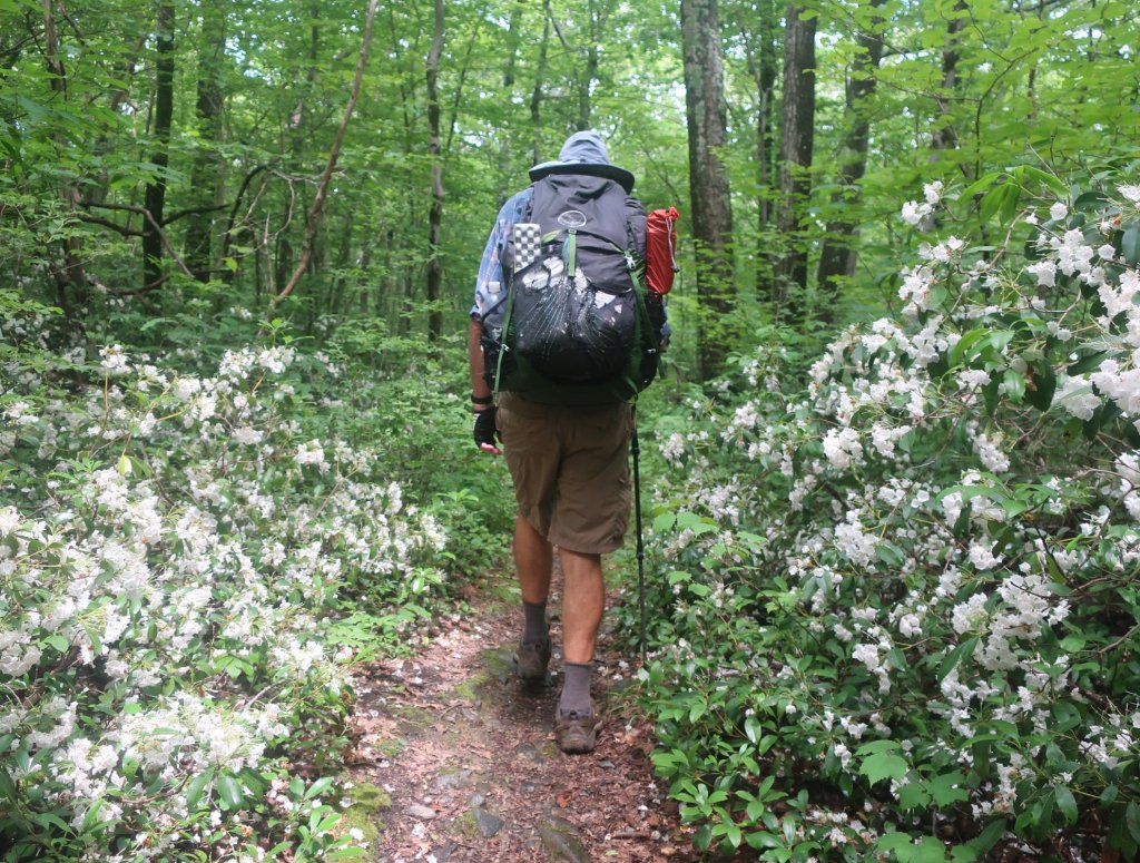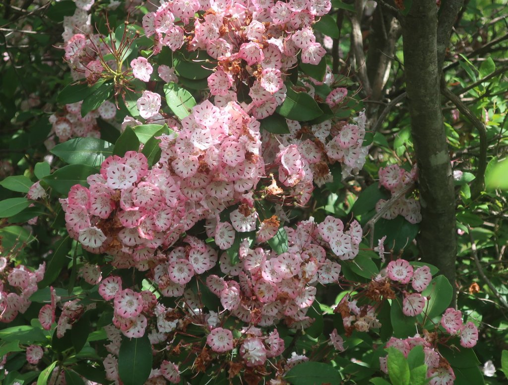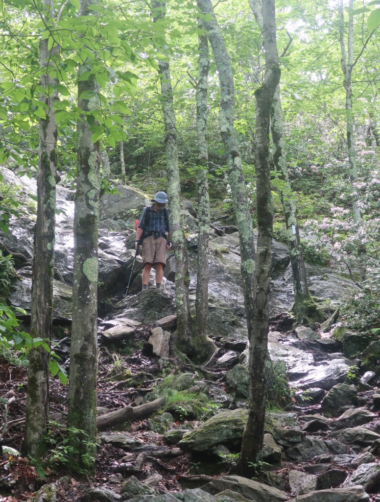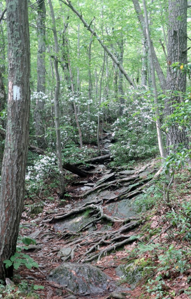 The overlook soon became busy with day hikers arriving in this now great weather July 4th holiday. We packed up the tent and headed on towards another big climb for the day, Bear Mountain. Huge stands of prolific Mountain Laurel in full bloom started to appear. Their faint perfume filling the trail. Seemed so unreal, I thought I was dreaming. It was so captivating particularly as the sun was shining and we were hiking through a corridor of the most perfect blooms. I must have taken hundreds of photos.