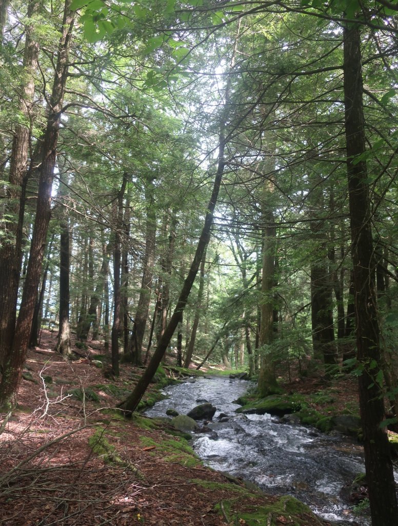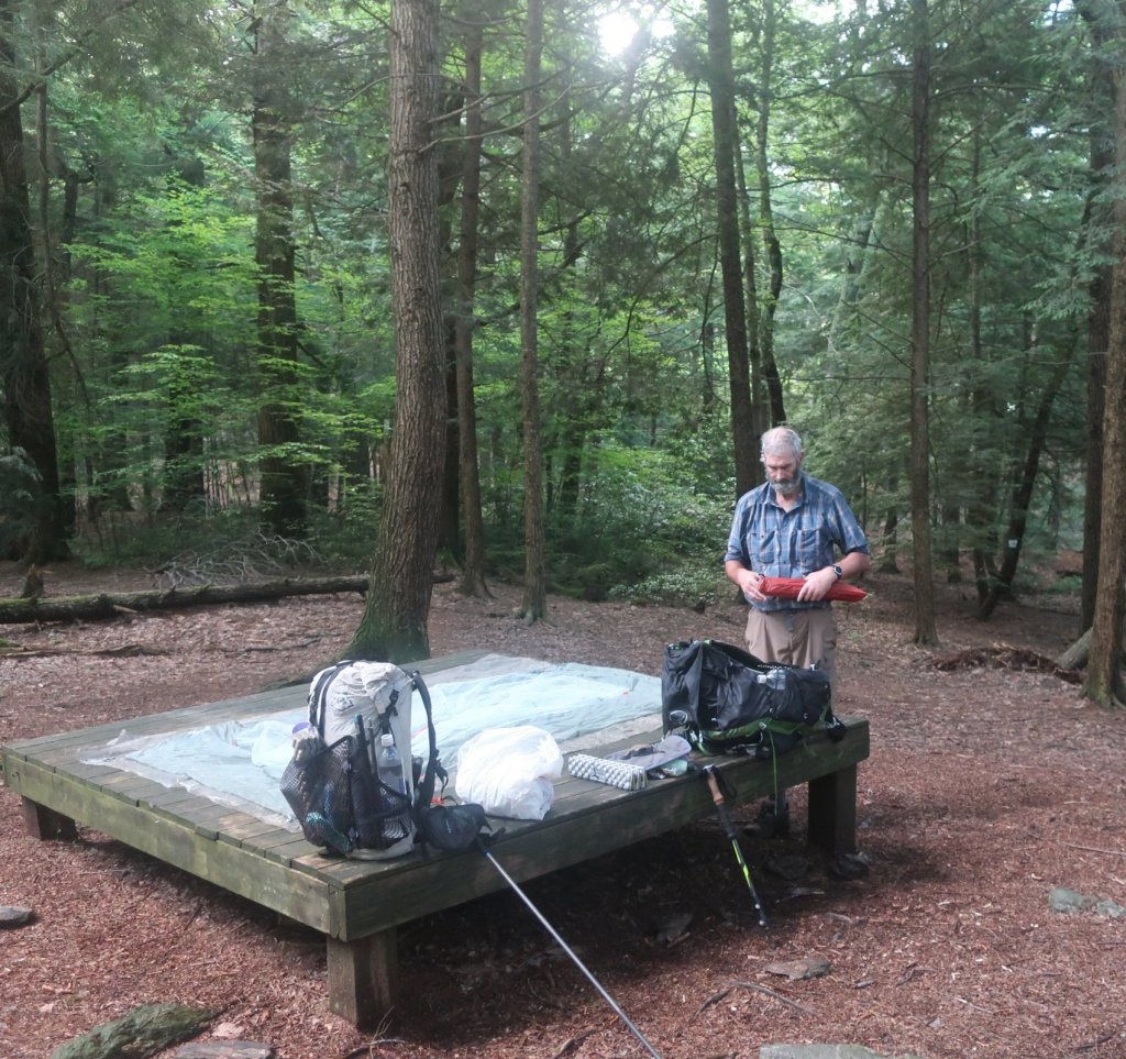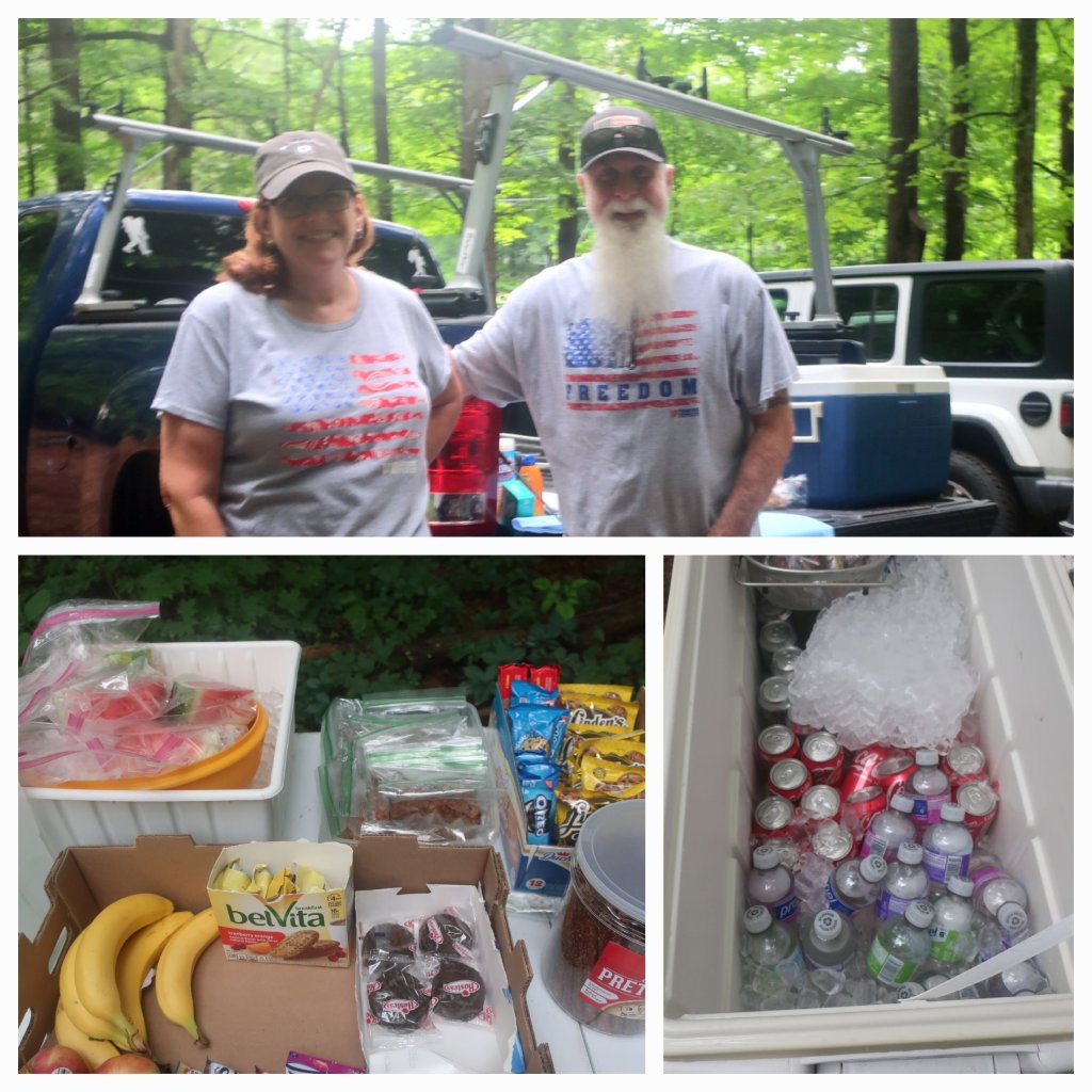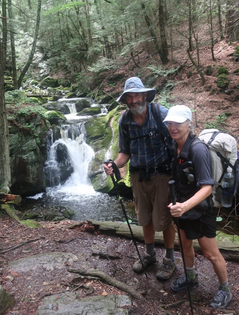 This morning hiking felt so much easier than yesterday. I don’t know whether it’s because of the burger last night or being around well dressed people having a lovely night out or whether the trail was just easier this morning We certainly didn’t have the lows that we had yesterday, despite the rain. We were having a good morning hiking and it got immeasurably better when we got to the trailhead parking at Route 41/ Undermountain Road. We met two lovely Trail Angels, Lisa and Ron who had a table set up with an amazing spread of food and drinks. Ron is a keen hiker, having completed the Long Trail in Vermont. Lisa is the organiser. We spent almost an hour eating and chatting. If we stayed any longer it could have been beer o’clock.