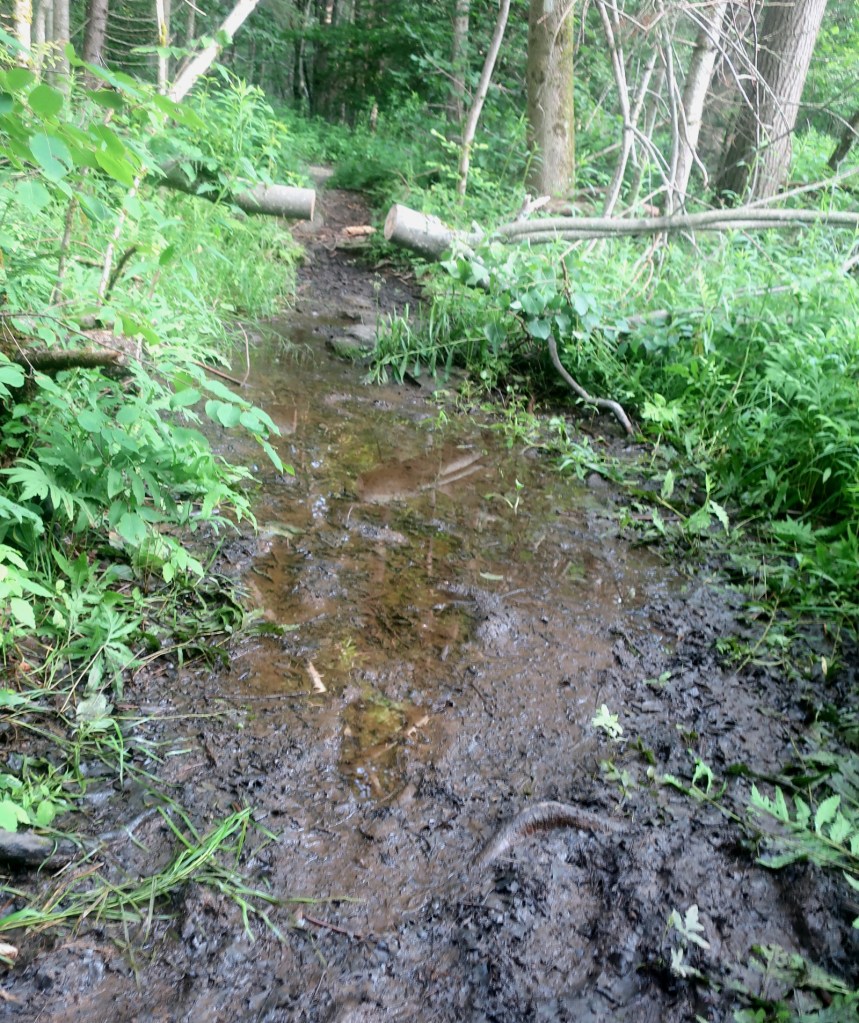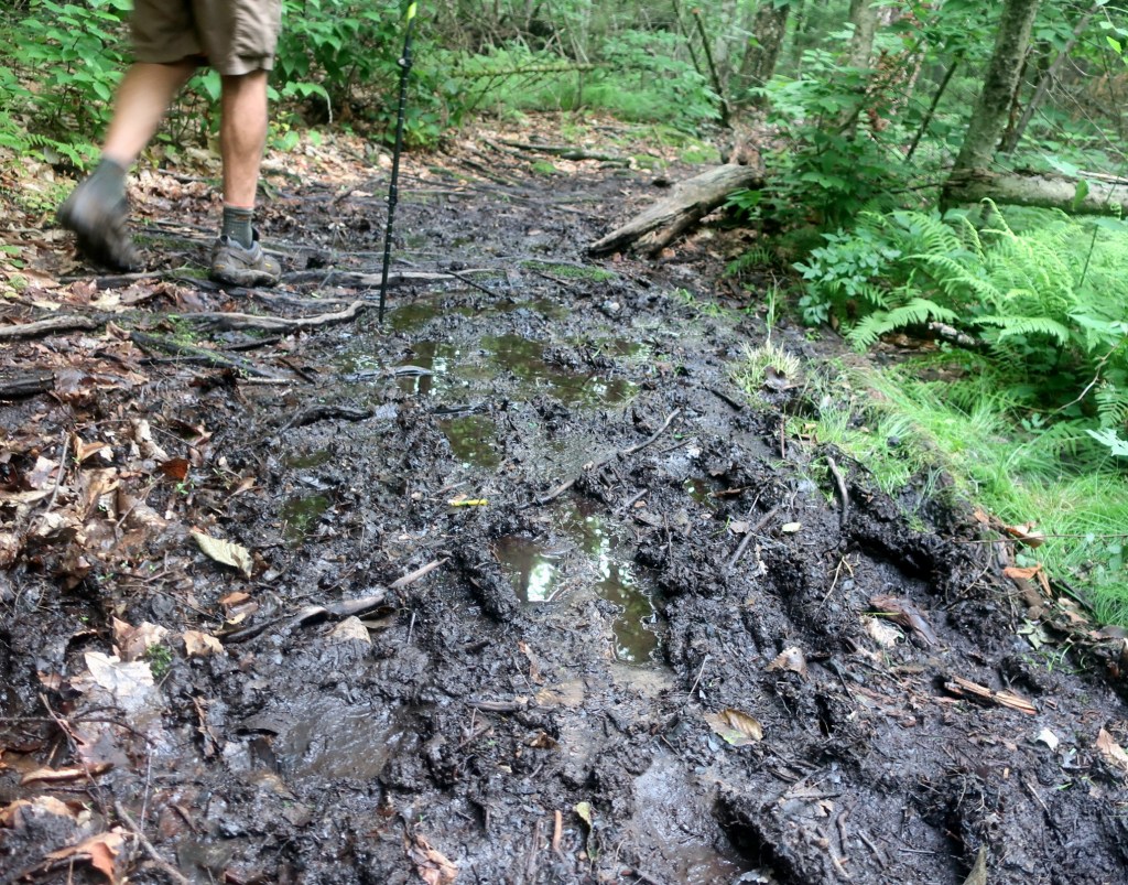 After crossing Caddy Brooke we had a short climb and reasonably nice soft trail until the mud started again. We made the summit of Werner Hill which offered views of some small hills and a valley to the northeast. After Werner Hill the trail conditions improved and hiking became a bit easier and less of a game of hopscotch to avoid sinking in mud.