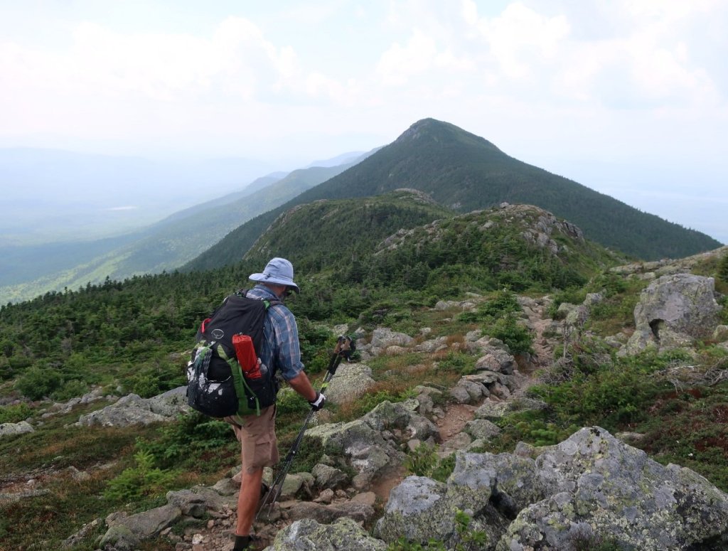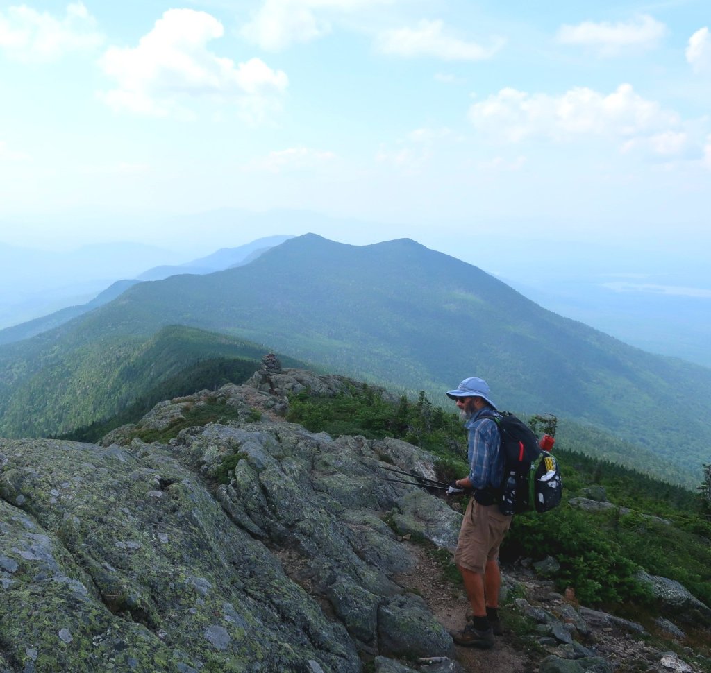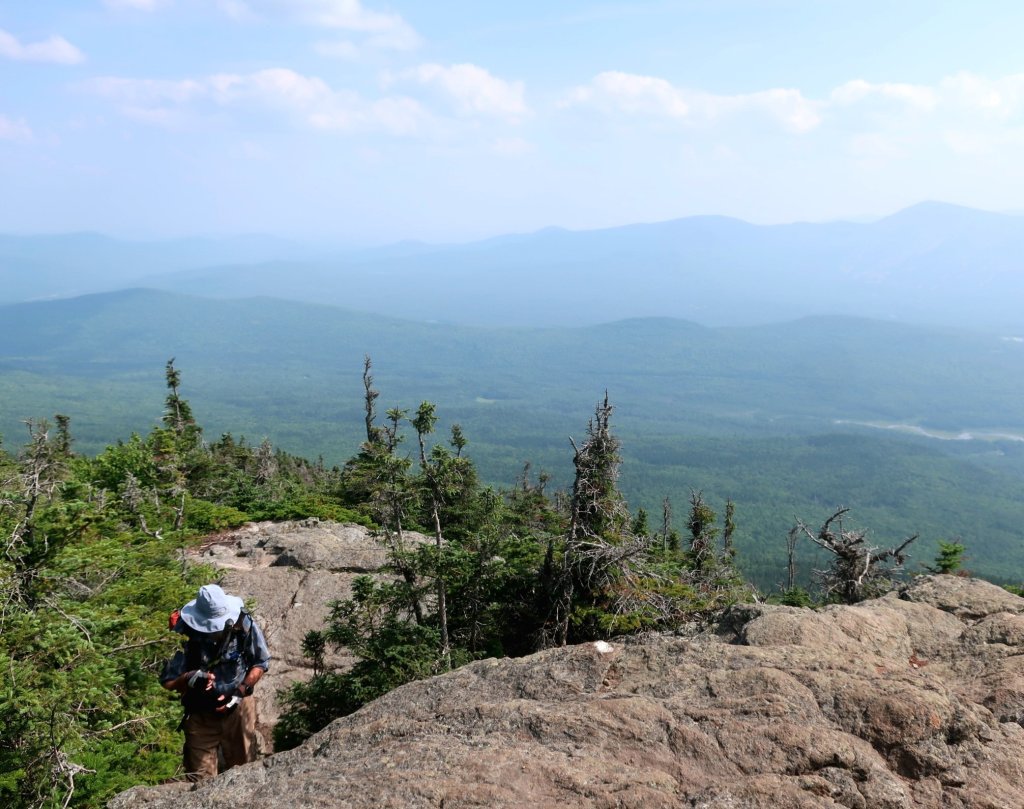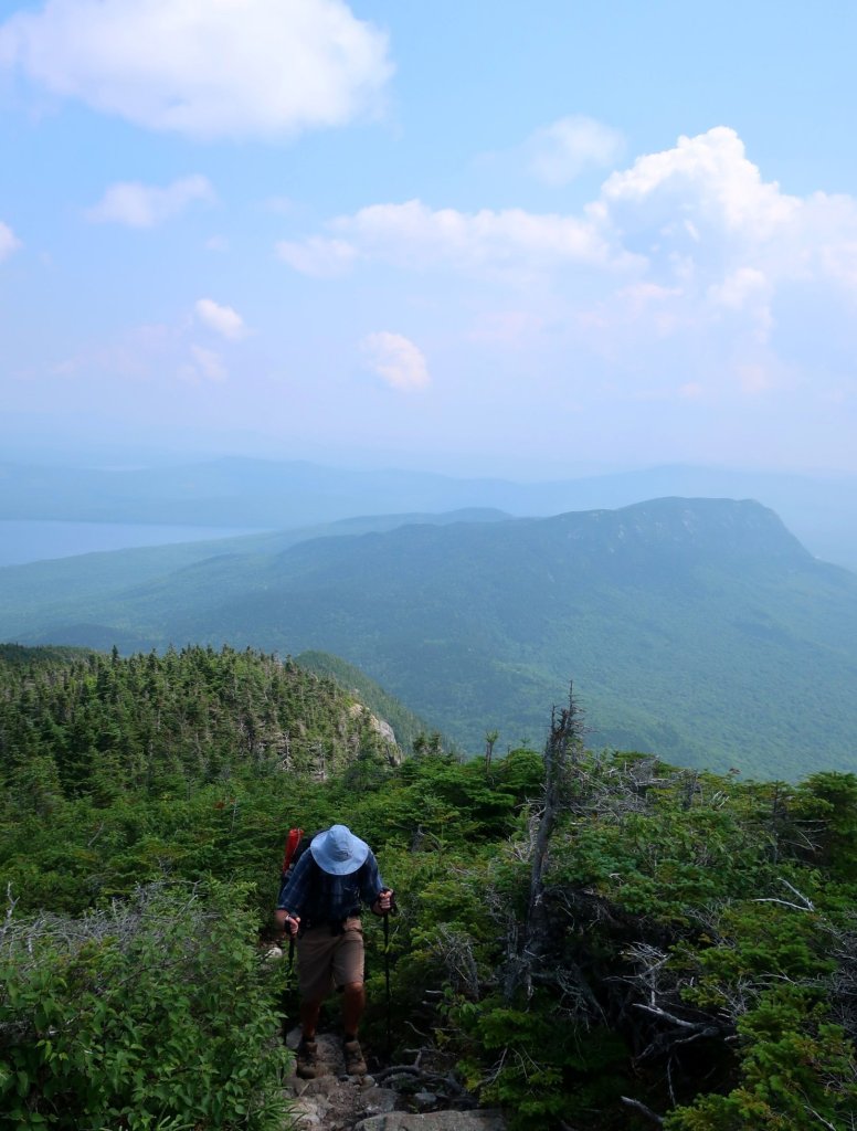 The next two miles to Avery Peak took us almost 2 hours…it was a steep ascent and quite technical rocky scrambles.  The top is above the treeline and provided even better views then Little Bigelow.  It was after midday by now and the white haze in the air obscured the views somewhat. The West Peak was more steep scrambling with great views back over the ridge.  We were tiring and started to look forward to the descent.