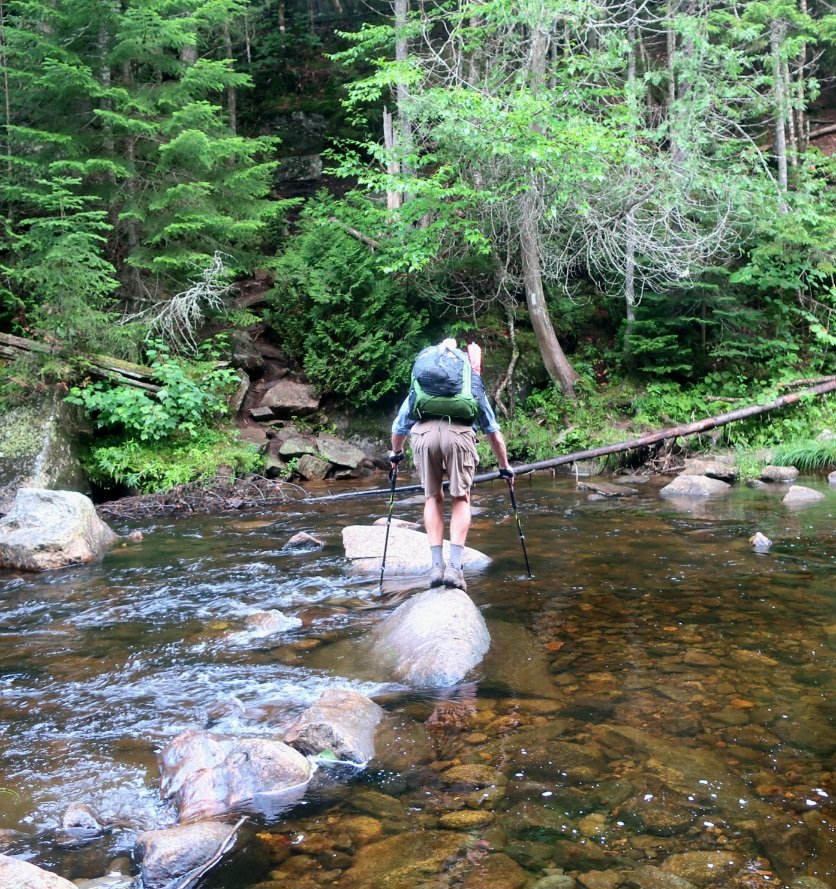 Not far from camp we descended to the crossing of Orbeton Creek. Hammer tried a very chancy dry foot crossing over widely spaced rocks and luckily he made it, could have so badly gone south. I took my shoes off and walked across in bare feet as the water was not flowing all that strong. So hopefully we can have another day of dry feet hiking.