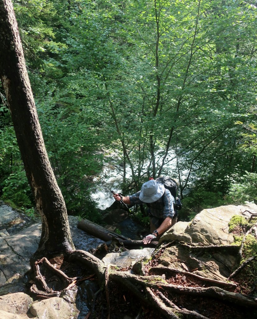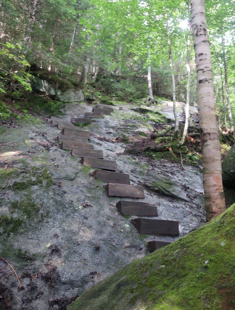As expected it wasn’t long before the ascent started. It was a steep and steady climb on really well-formed trail with rock stairs and timber footholds in the shear rock faces. Walking alongside the numerous waterfalls of the Beaver Brook added to the scenery of ascending from the northside.