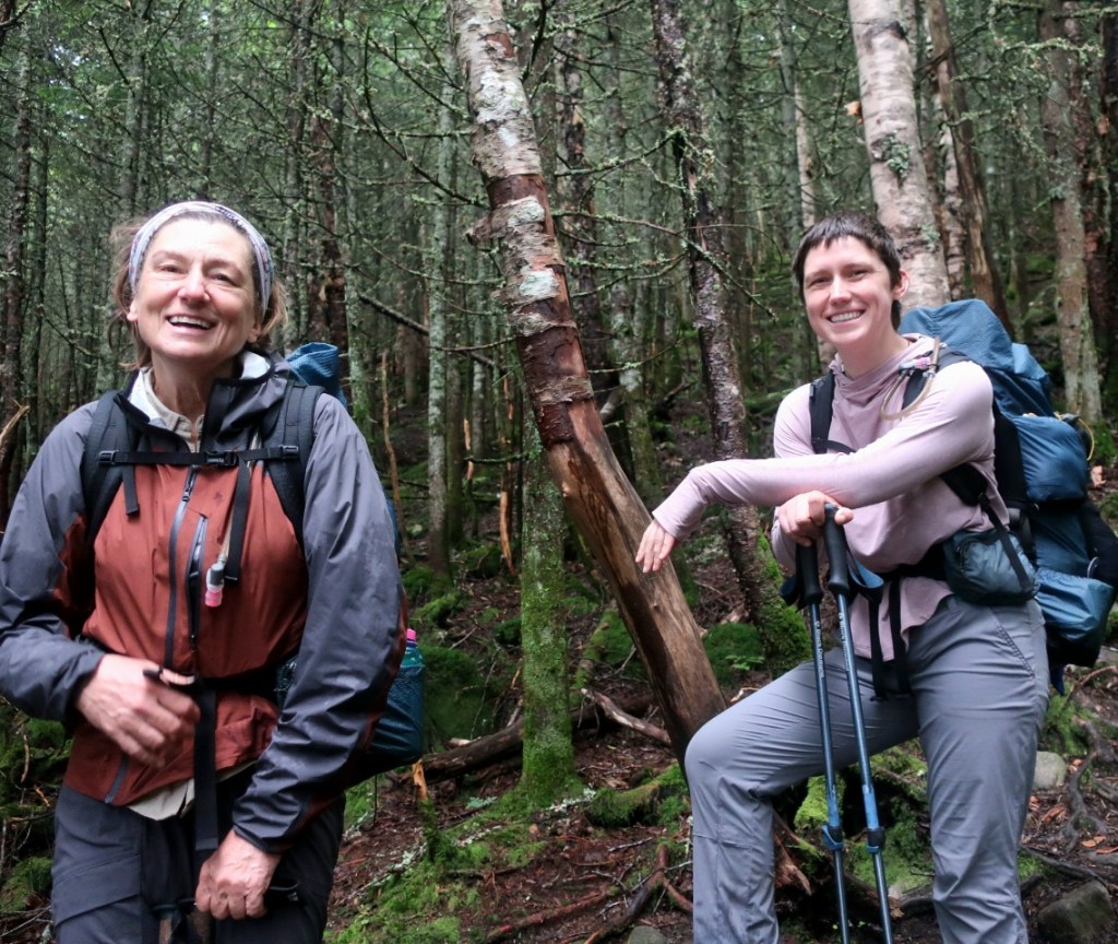 Mt Moosilauke at nearly 5000 feet and a much commented on difficult descent for north bound hikers. It rises 3,000 feet over 3.5 miles. We hope that for us it’s just a grind uphill without sliding off rocky slopes or breaking something. The Notch shuttle dropped us off at the trailhead at 7am.