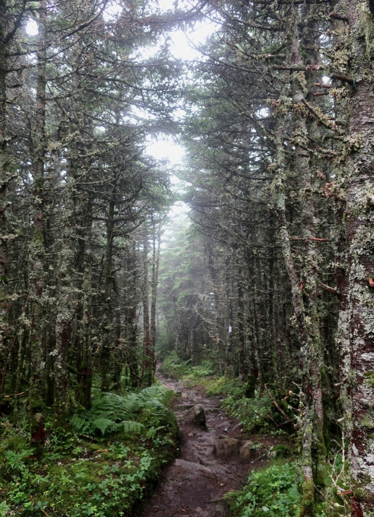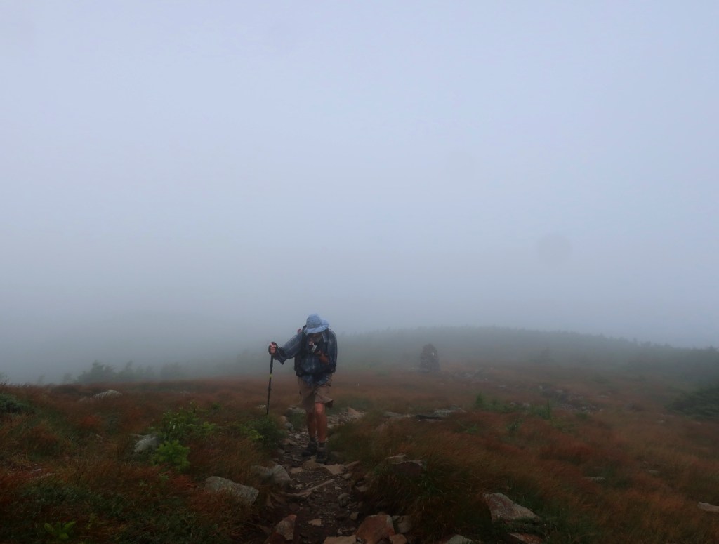 From the start this morning it looked like it was going to be a nice clear day up on the summit but as we rose further along the mountain it got colder. It was misted in and quite a strong wind was blowing on top so we were keen to get over the top and start the descent. Amazing how these mountains have their own weather patterns. The wind on the summit was stronger then we experienced on Mt Washington. I was being blown sideways. We were so grateful that it wasn’t raining.