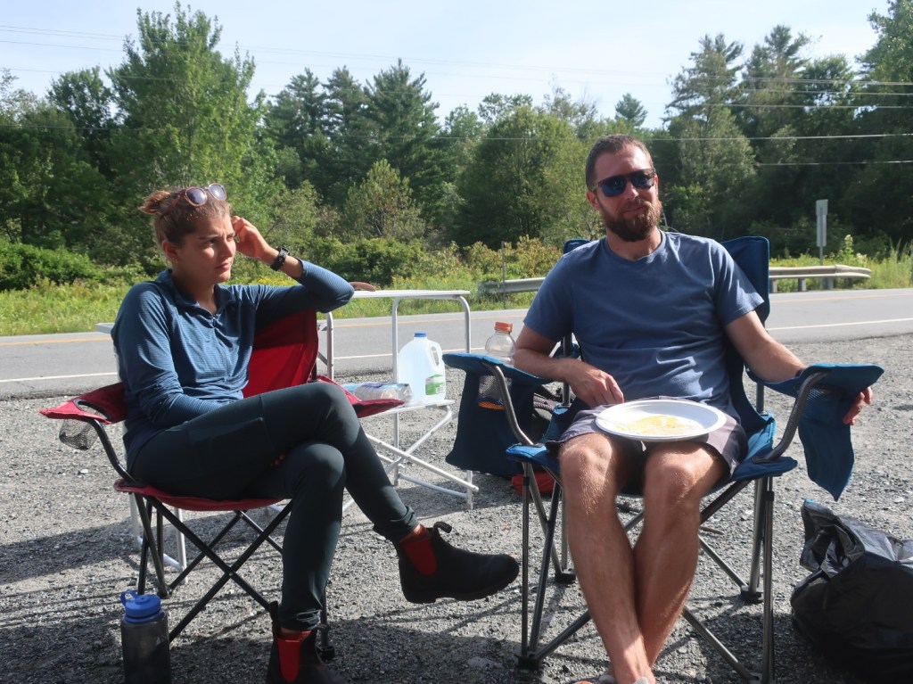 We made it to route 25A where we met up with Ricky Bobby and Tori again. They were serving up breakfast for hikers and we stopped for sausage and eggs and home made guacamole on toast. The sun was shining and we stayed to chat with Ricky Bobby and Tori for probably an hour and a half. It was just so wonderful to sit in the sun and share some stories and plans for the future. Eventually we had to get back on trail.