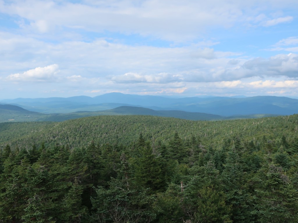 The trail up Mt Cube goes for 3 miles rising 2000 feet. It was a great trail with newly built stairs and the trail crews were out today still building sections. They’re still not building switchbacks on the AT. It was a steep and steady climb on rocky stairs to the summit. The views from the summit were really nice. Views for miles around. We stopped for lunch on a ledge. It was really nice, the sun was shining it was warm and we could see the fire tower on the summit of Mt Smart where we are heading next. It was a glorious view and so nice to just be able to sit on a mountaintop and not get blown off. The descent of Cube Mountain was a little bit more tricky. The quartzite rocks made it much harder to trust the grip so you feel like you could slide and get hurt. But thankfully that section didn’t go for too long before we were back on on a rooty, muddy trail.
