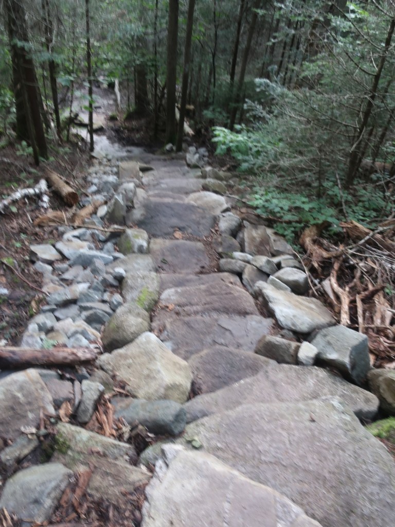 The descent off the mountain was a lot steeper then the ascent. A series of steep and newly constructed rocky stairs took us down to what felt like a neverending traverse of Lambert Ledges. We were tiring and my knee was painful on the descent which felt like it took an hour longer then it should have. Rain was expected and we wanted to be off the mountain and camped before the rain arrived.