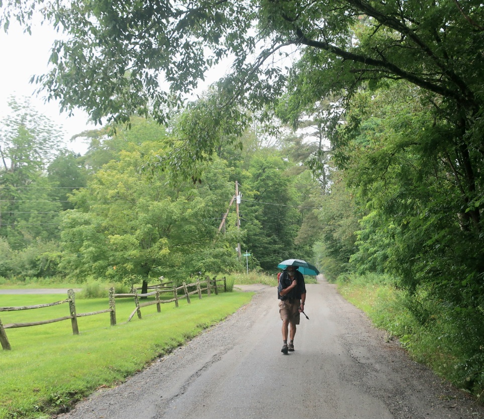 Soon the rain returned but we could hike with our umbrellas out and chatting side by side. Reminded us of miles of road hiking on the CDT (without the rain). It was just nice not to have to fight the mud for a while. Of course the road walk got warm after the rain passed and sunshine returned. We didn’t have the tree canopy to keep us shaded. Our wet feet were well and truly dry by midday. Hammer was keen to cross over and get back on trail. I was not so keen. I was enjoying having dry feet and admiring the lovely houses as we hiked on. And seeing blue sky felt like a treat.