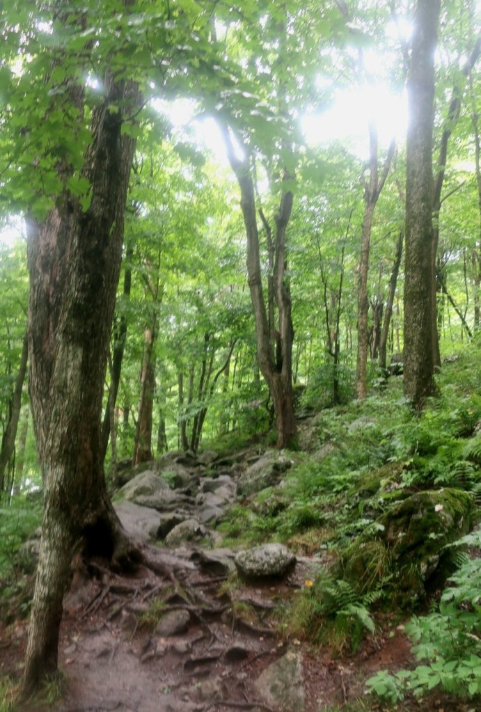 The rain stopped and started as we ascended Mount Killington. It was only two miles but it just seemed to go on and on. We were back on rocks and roots and much more mud then we’d had so far in Vermont. The rocks and roots combined with wet weather and mud made for very slow progress. It was almost 4:00 p.m. when we made the summit, well not really the summit. The AT passes on the non ski field side of of Mt Killington. The summit is a spur trail off the AT.