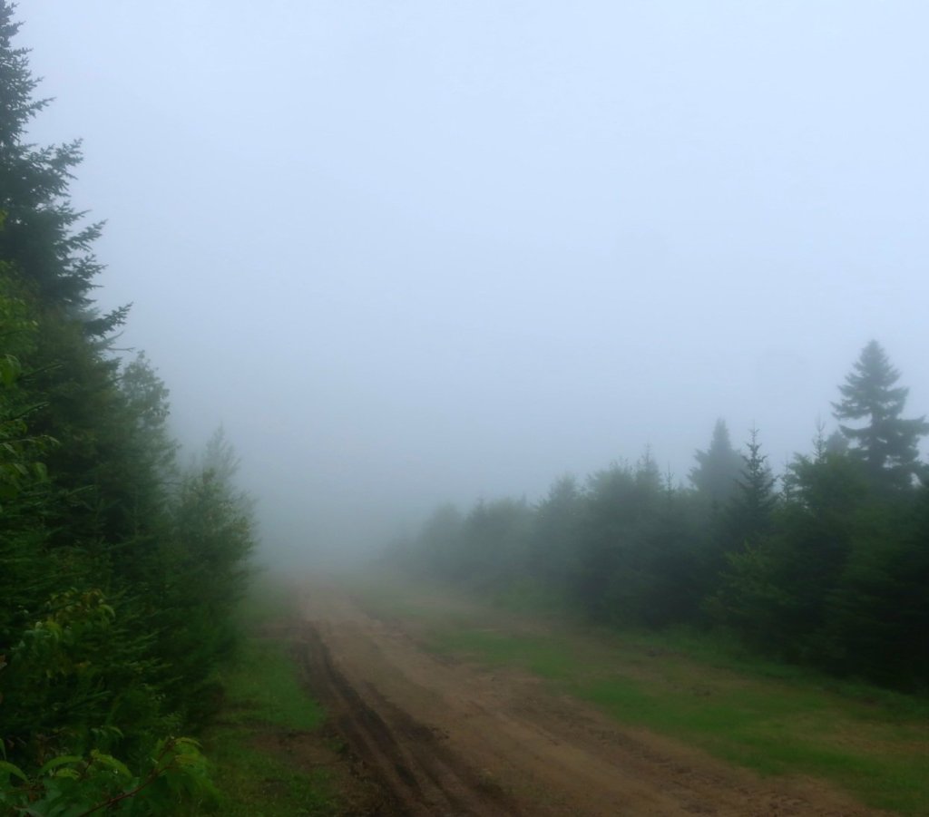 We slept well on our campsite by Stony Brook. It didn’t rain through the night just residual moisture on the leaves dripping on the tent. I was awake way too early. keen to get going, keen to get one day closer to getting it done. For a long time now our focus has been on just finishing. Maybe we are just too stubborn to quit So after my morning coffee and breakfast biscuits for Hammer we broke camp before the rain arrived and were on our way at 5:30. From Stony Brook it was a long ascent up towards Quimby Mountain. The air was misty in between the trees and the trees were dripping water. The dripping moisture soon turned to rain.