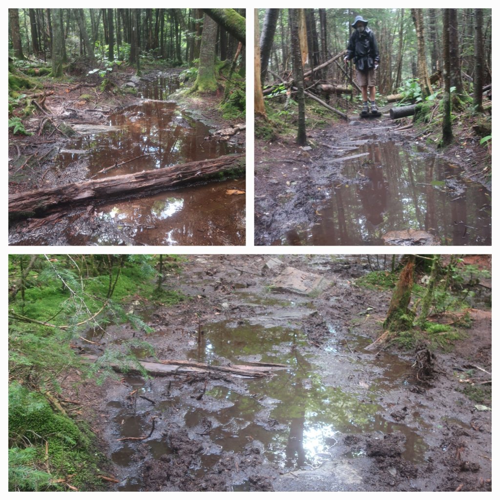 We were less then a mile into the descent when heavy rain set in. It rained for an hour and the sun came out soon after. The descent off Mt Killington took us almost 3 hours. It felt painfully slow especially as I’ve started to develop blisters. Almost the same pattern as on our early days in Vermont back in early July. I think the soil is very sandy and with the unavoidable sections of mud the sand that gets inside my shoes behaves like sandpaper on my feet. I’m also wearing Injinji sock liners and this is holding the wet sand against the skin. The double sock combination has kept my feet largely blister free on all our previous hikes, but not in Vermont. Hammers shoes being leather didn’t have so many problems.